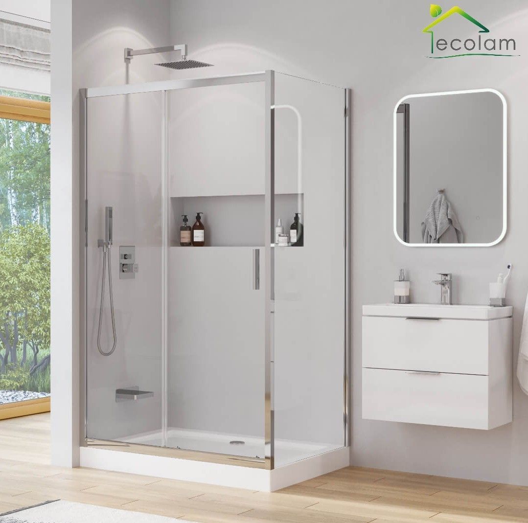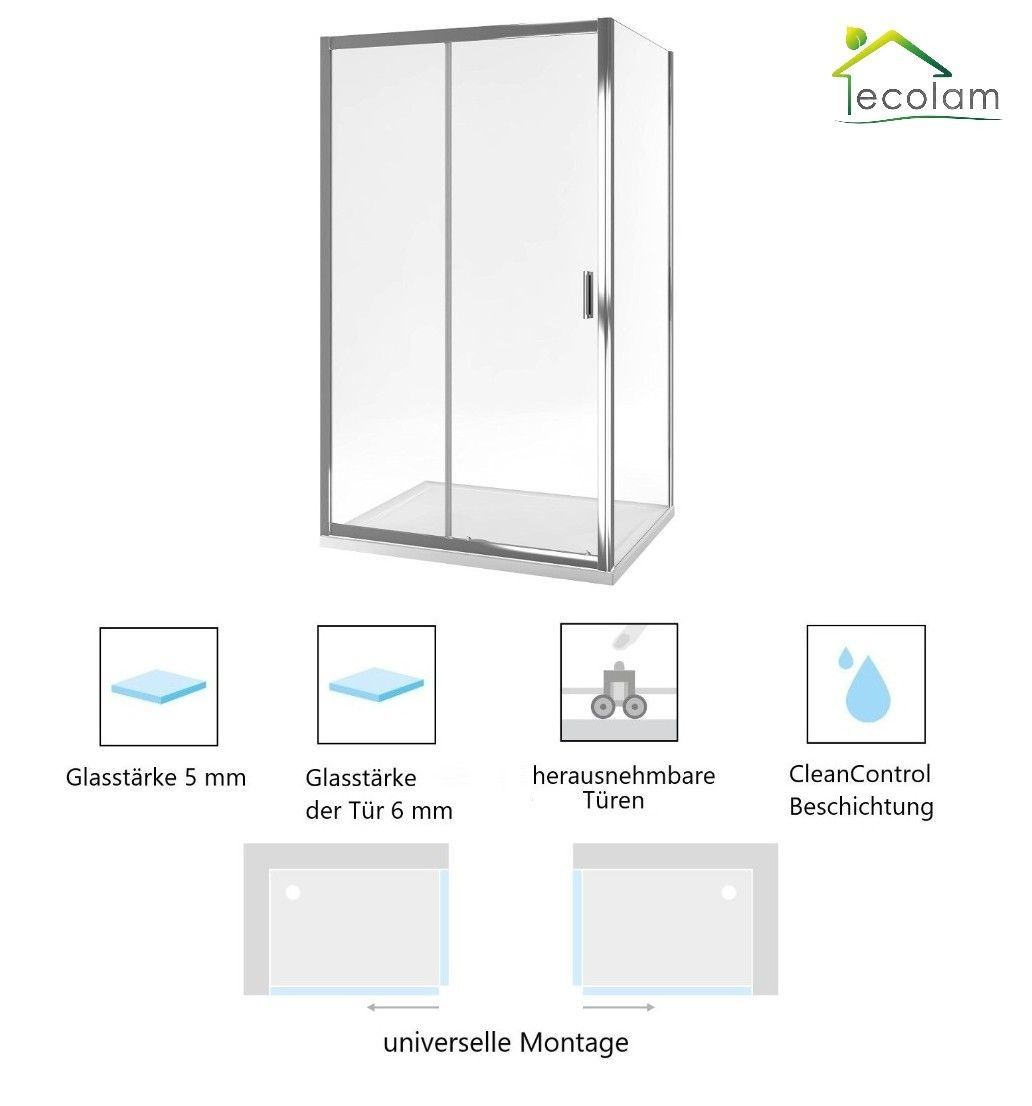 ECOLAM Duschkabine 120x80 cm Rechteck H 190 Schiebetür Dusche Klarglas Chrom Serie201