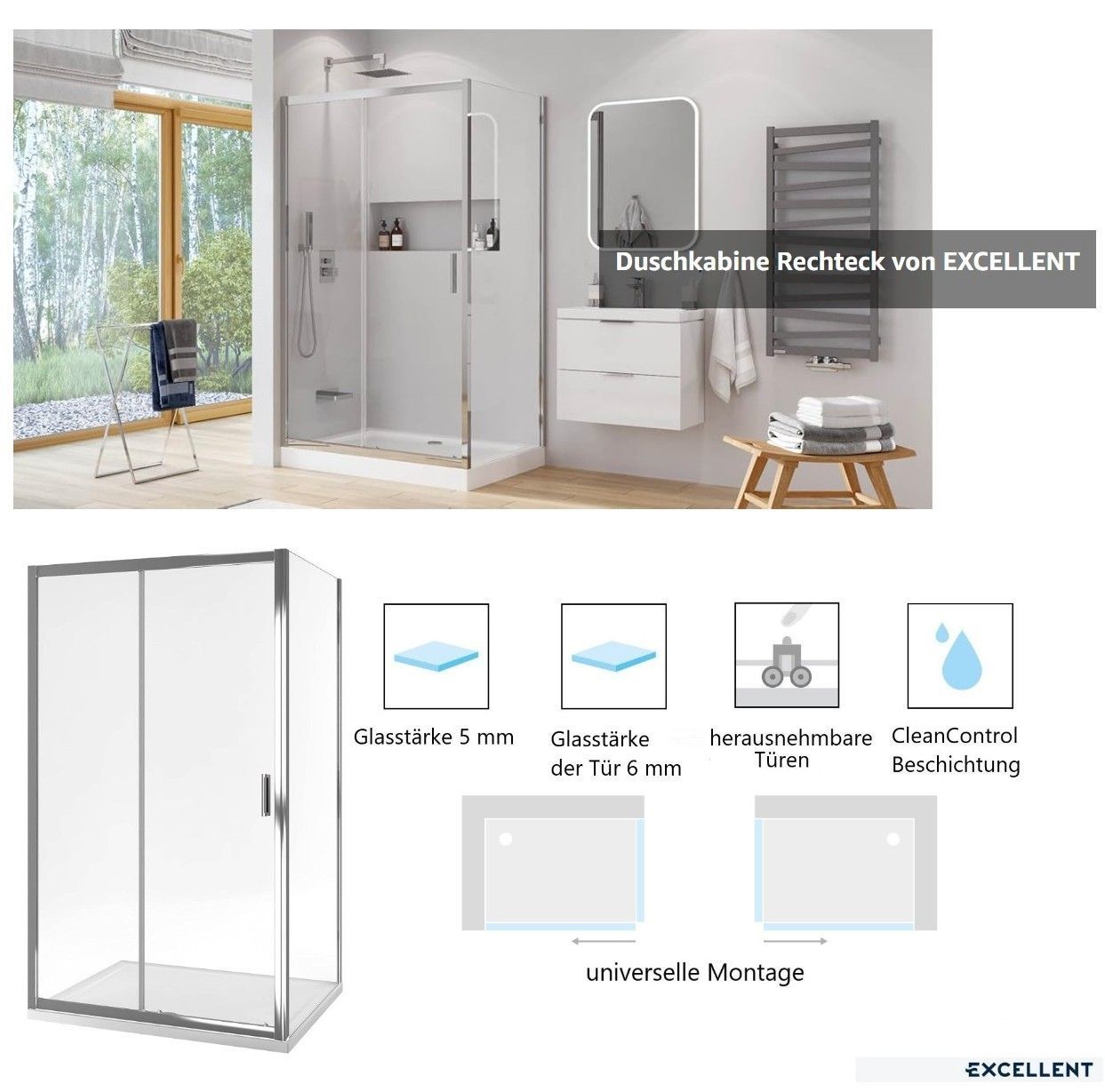 DE kostenloser Versand 30 Tage Austausch Rückgabe *neue Ware Herstellergarantie Kundenbetreuung Mo-Fr 8.00-16.00 weltbekannter Hersteller EXCELLENT SEHR GUTE QUALITÄT - schöne und praktische Dusche Duschkabine Rechteck 120x80 cm Höhe 190 cm mit Schiebetür Clean Control Beschichtung Herstellergaranti