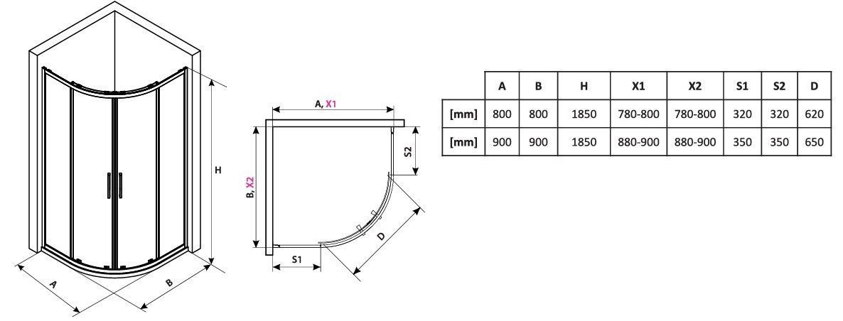 ECOLAM Duschkabine Dusche 90x90x185 Viertelkreis Duschabtrennung Azul chrom ProClean
