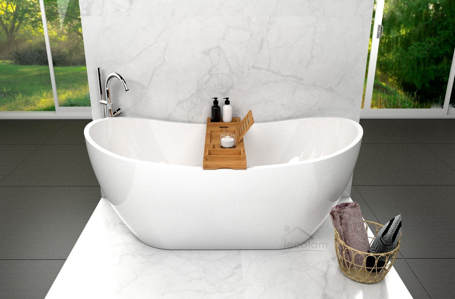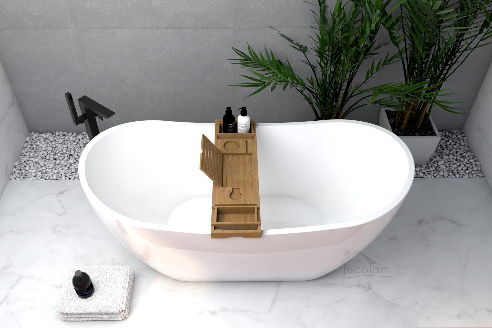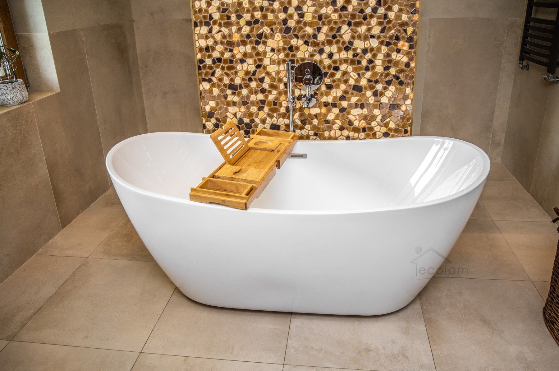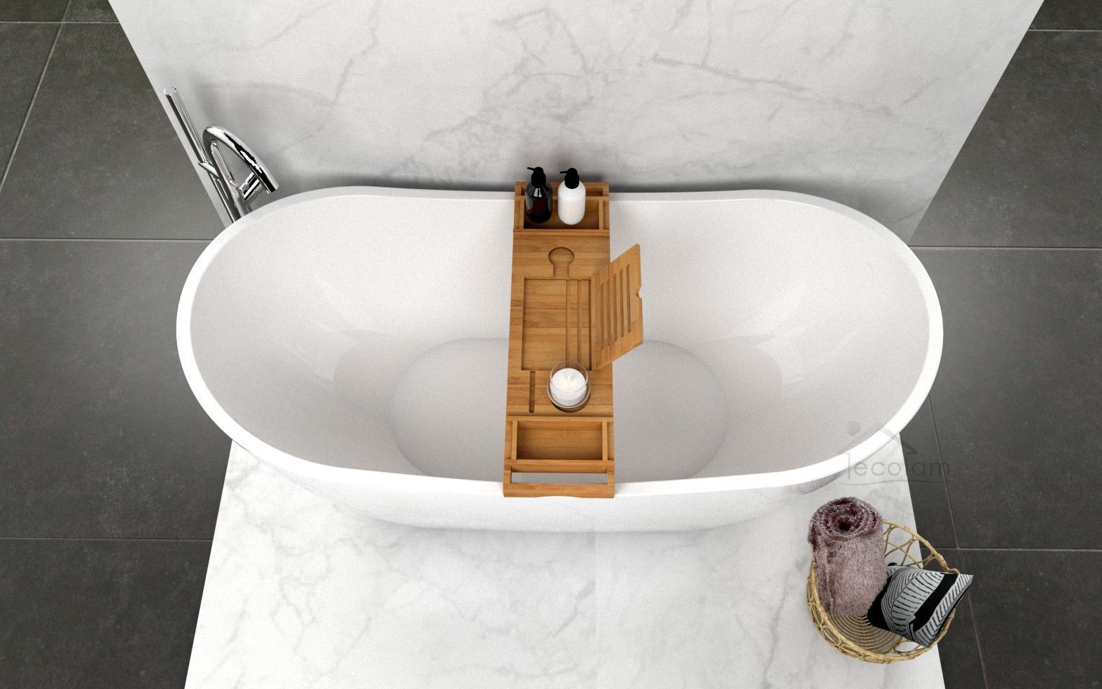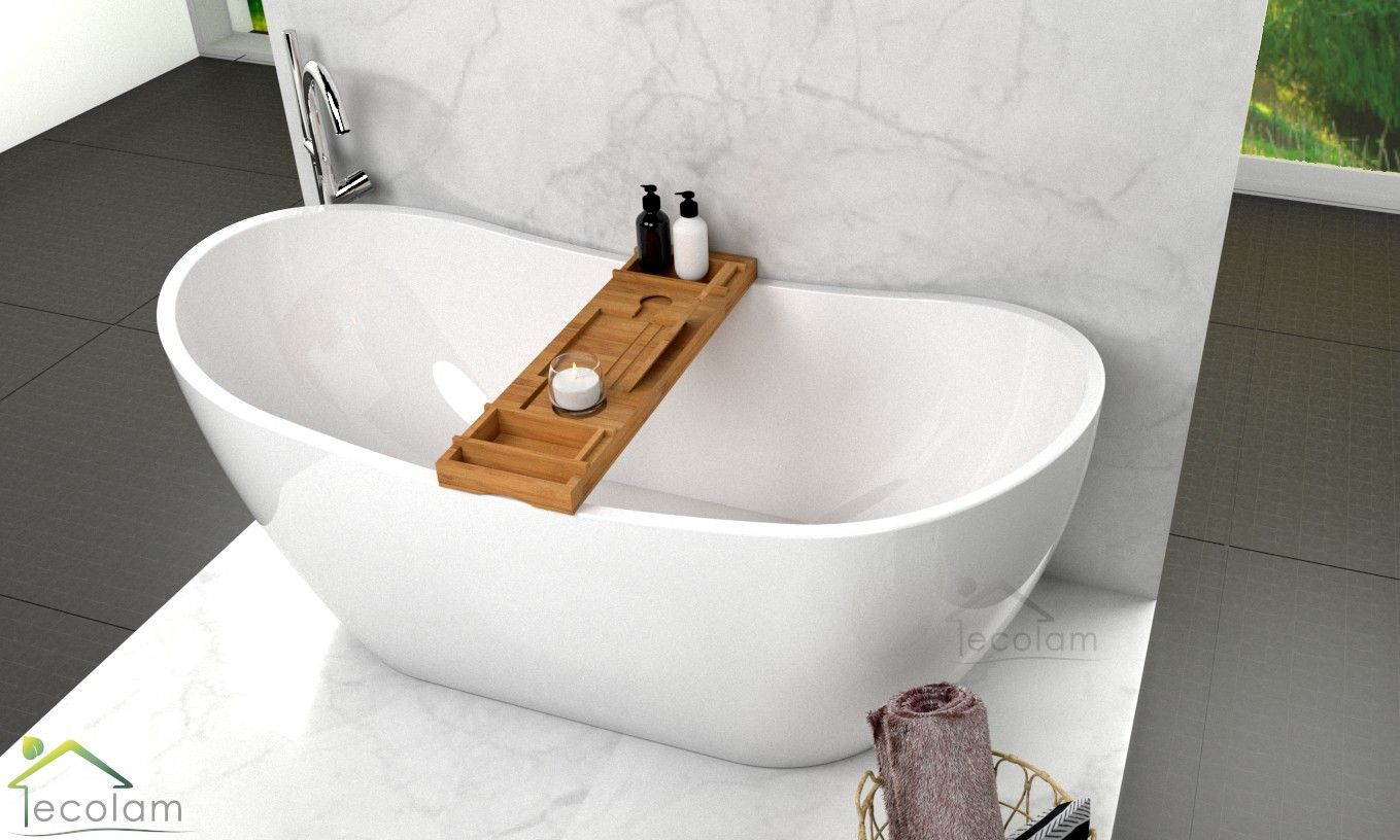 ECOLAM freistehende Badewanne 170x80 Clara Standbadewanne Bambusablage Siphon GRATIS