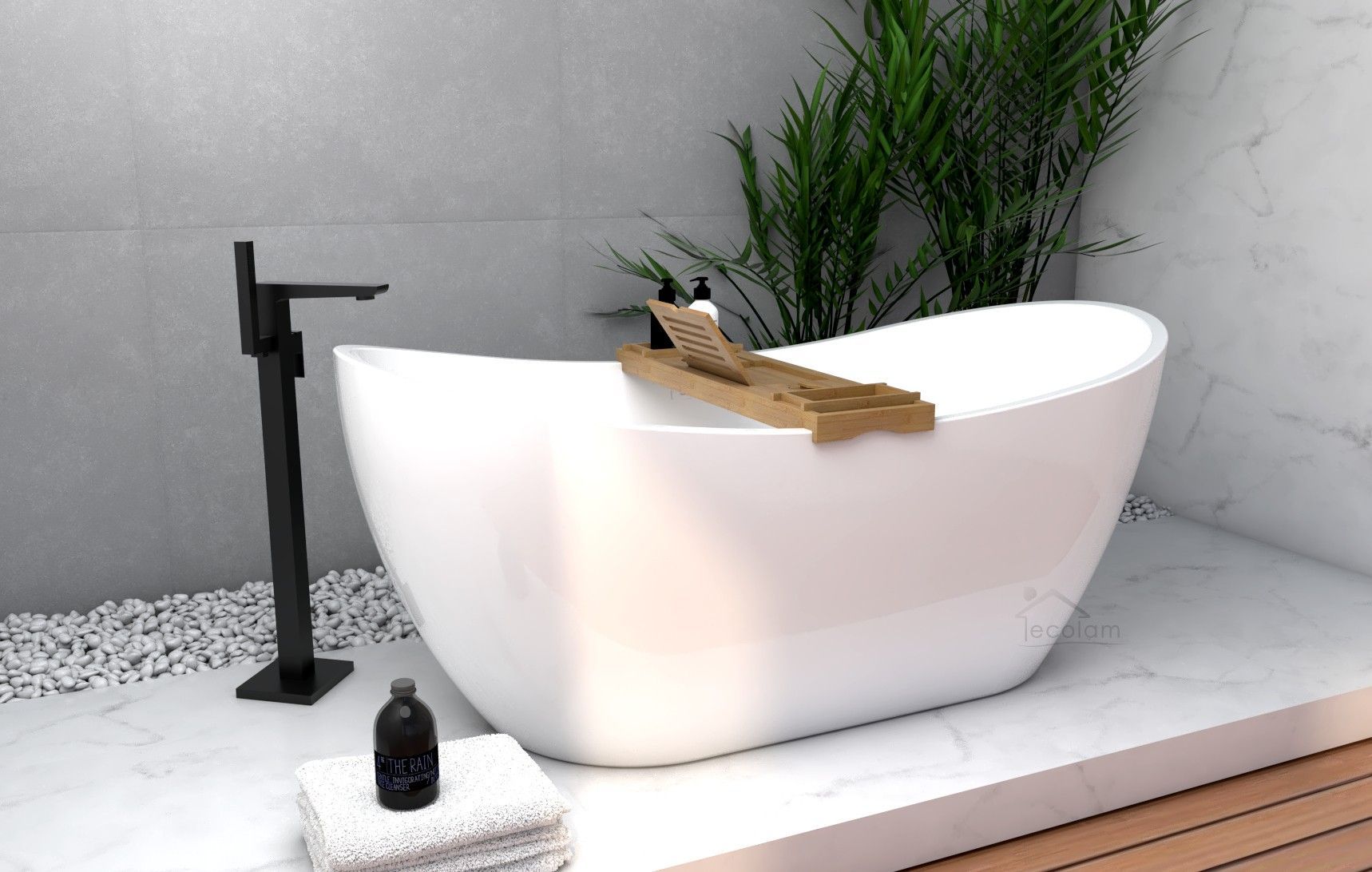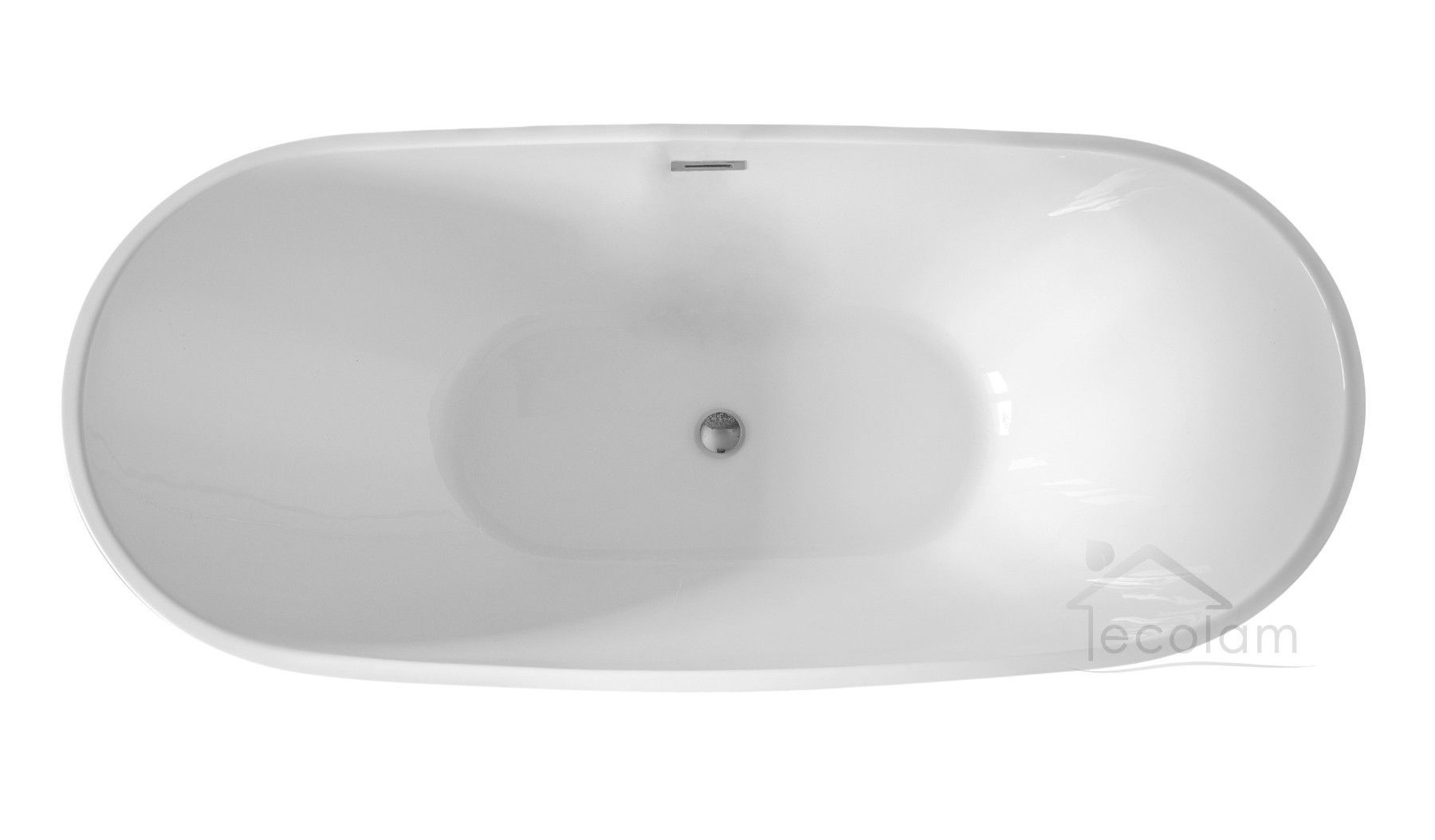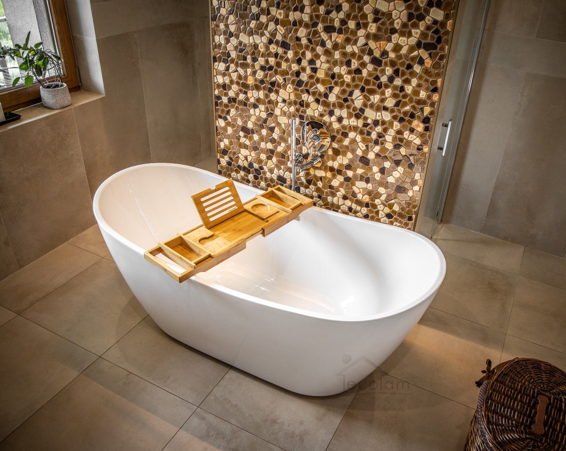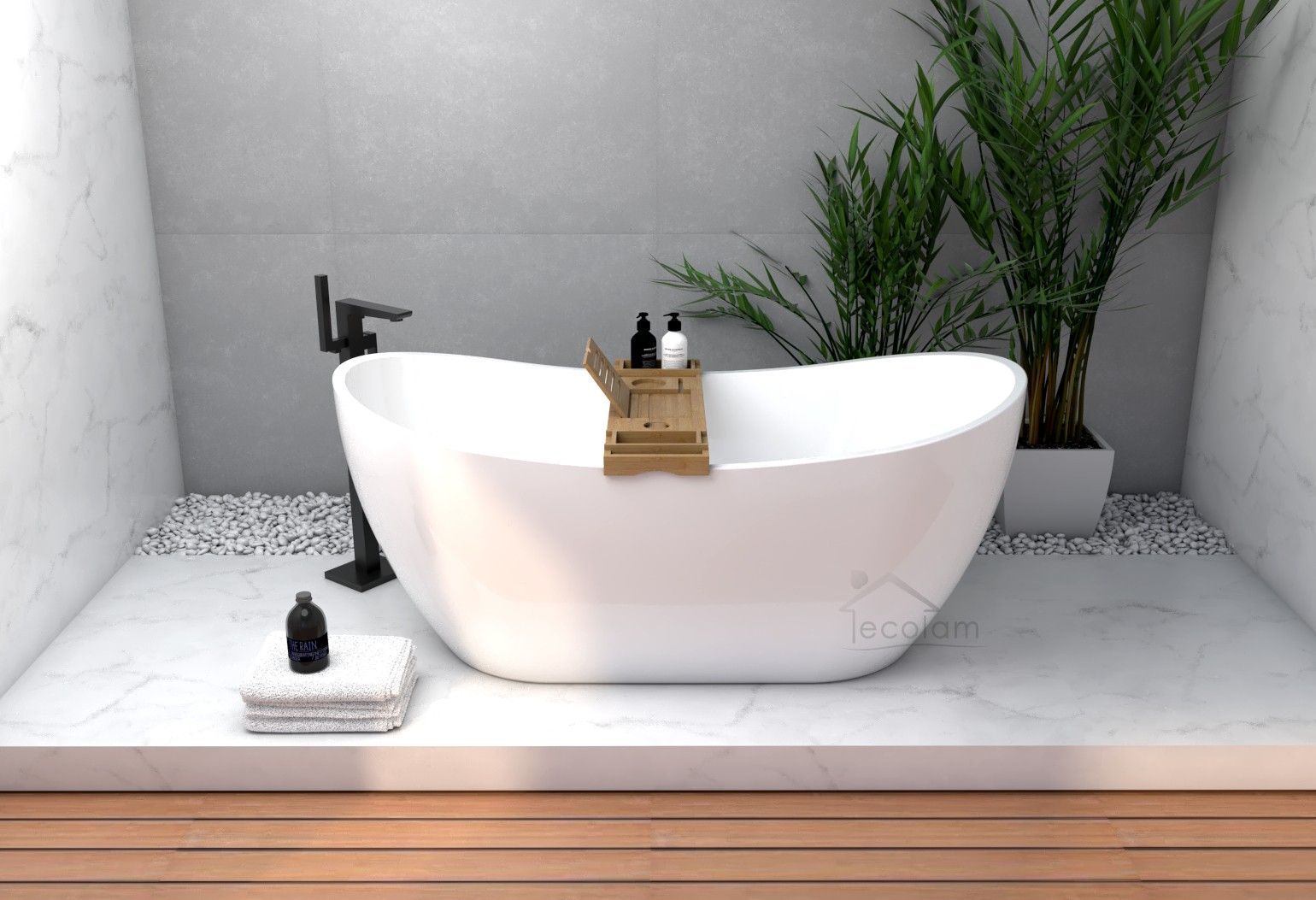 ECOLAM freistehende Badewanne 170x80 Clara Standbadewanne Bambusablage Siphon GRATIS