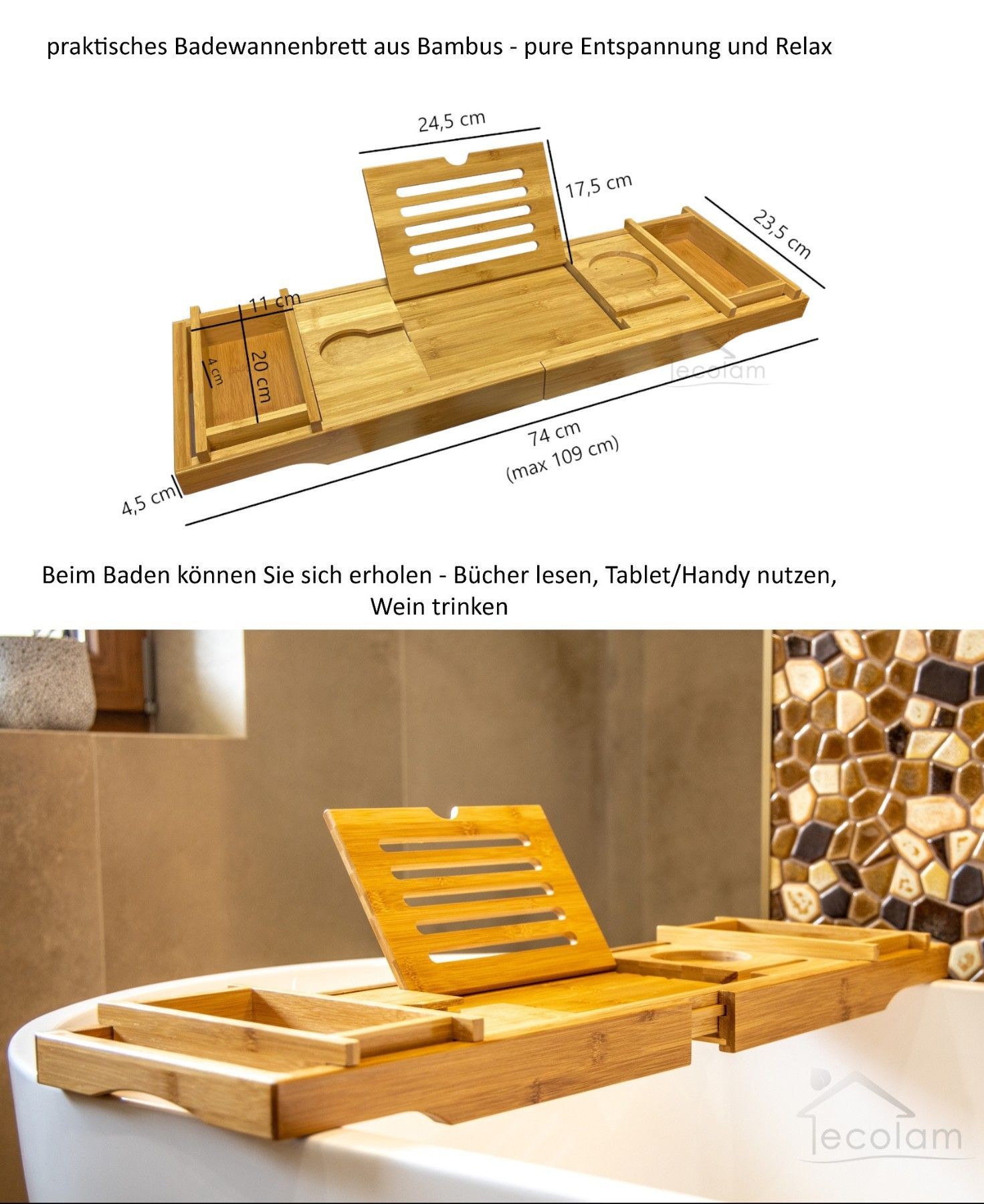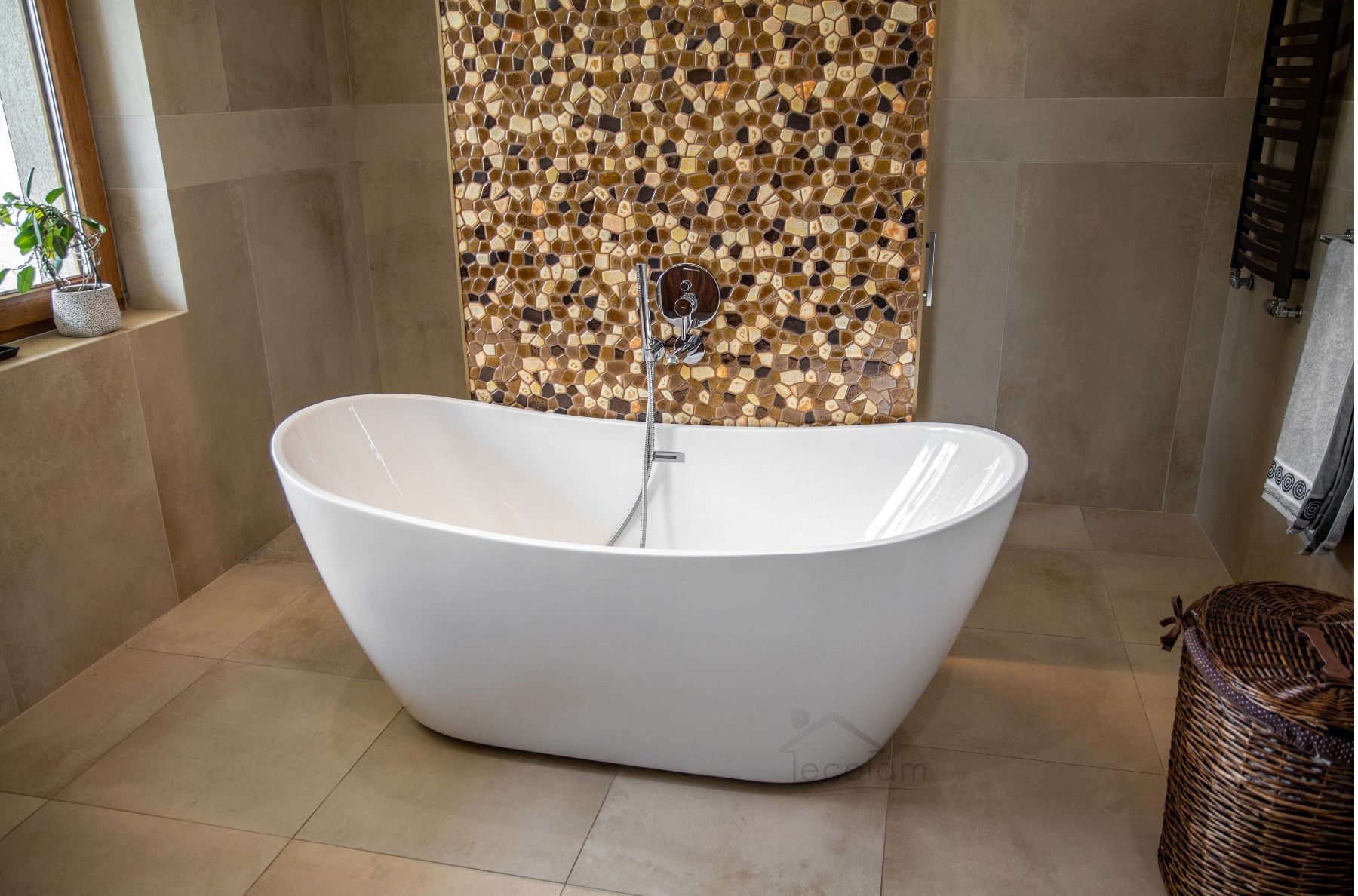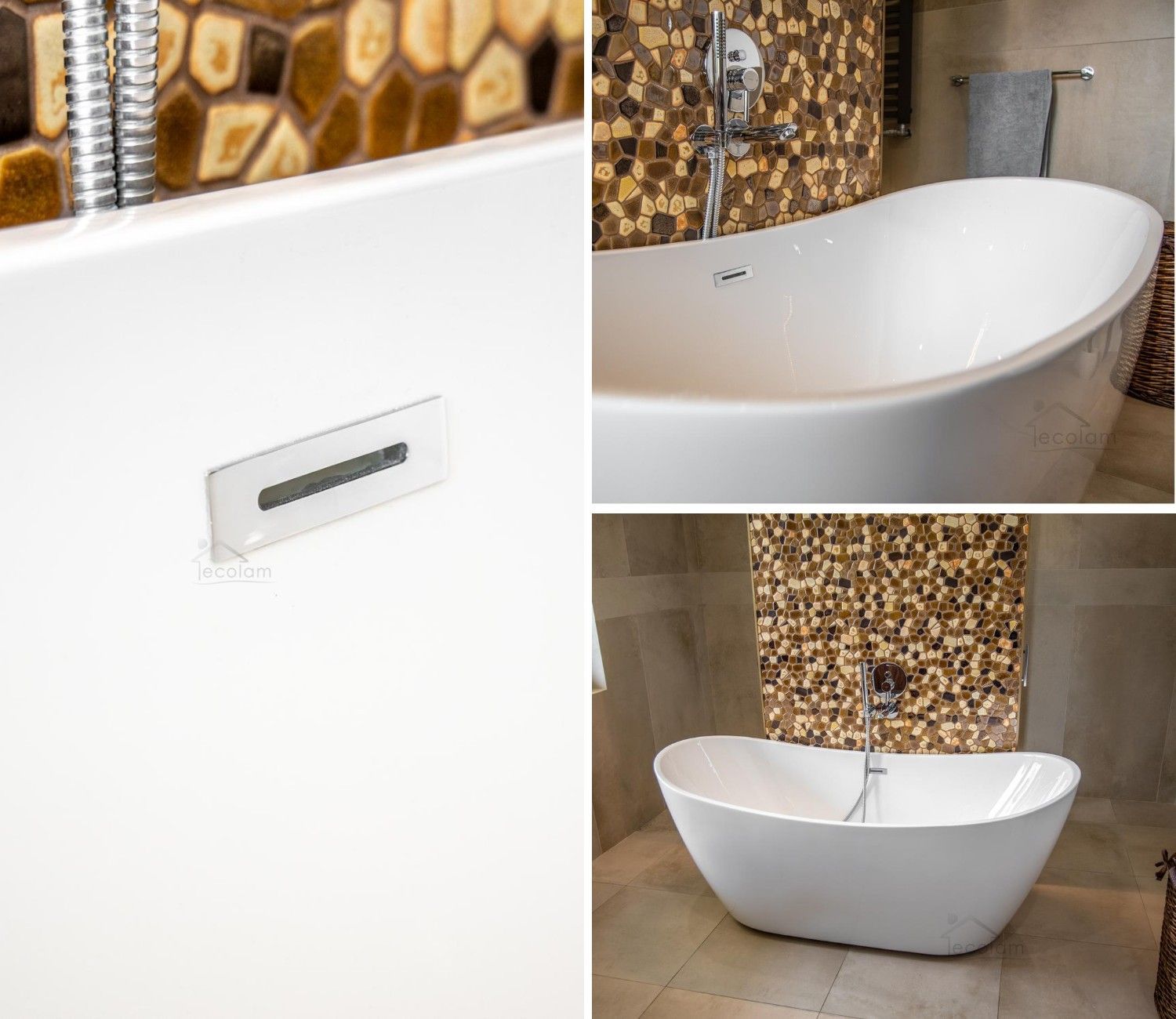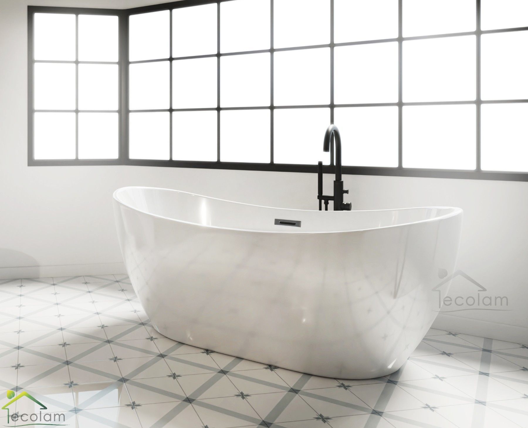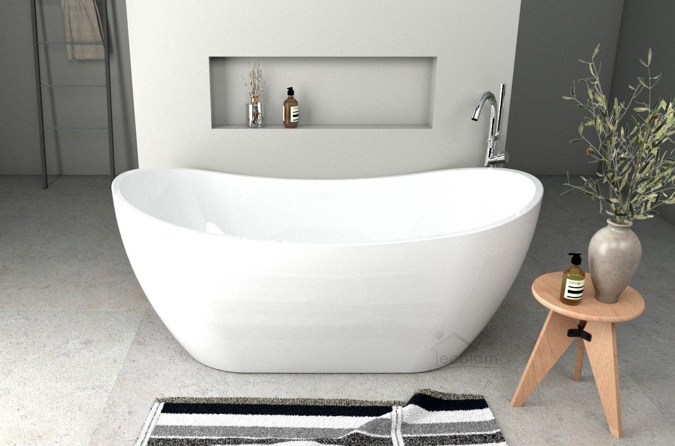 ECOLAM freistehende Badewanne 170x80 Clara Standbadewanne Bambusablage Siphon GRATIS
