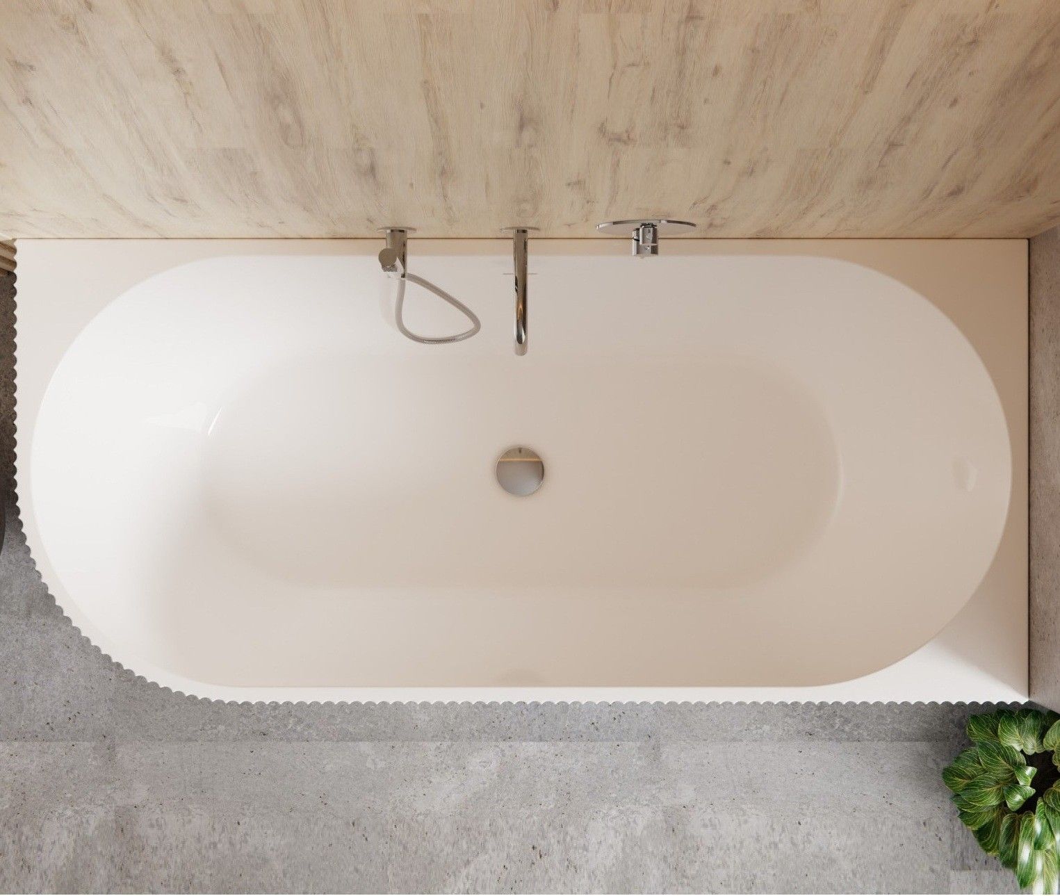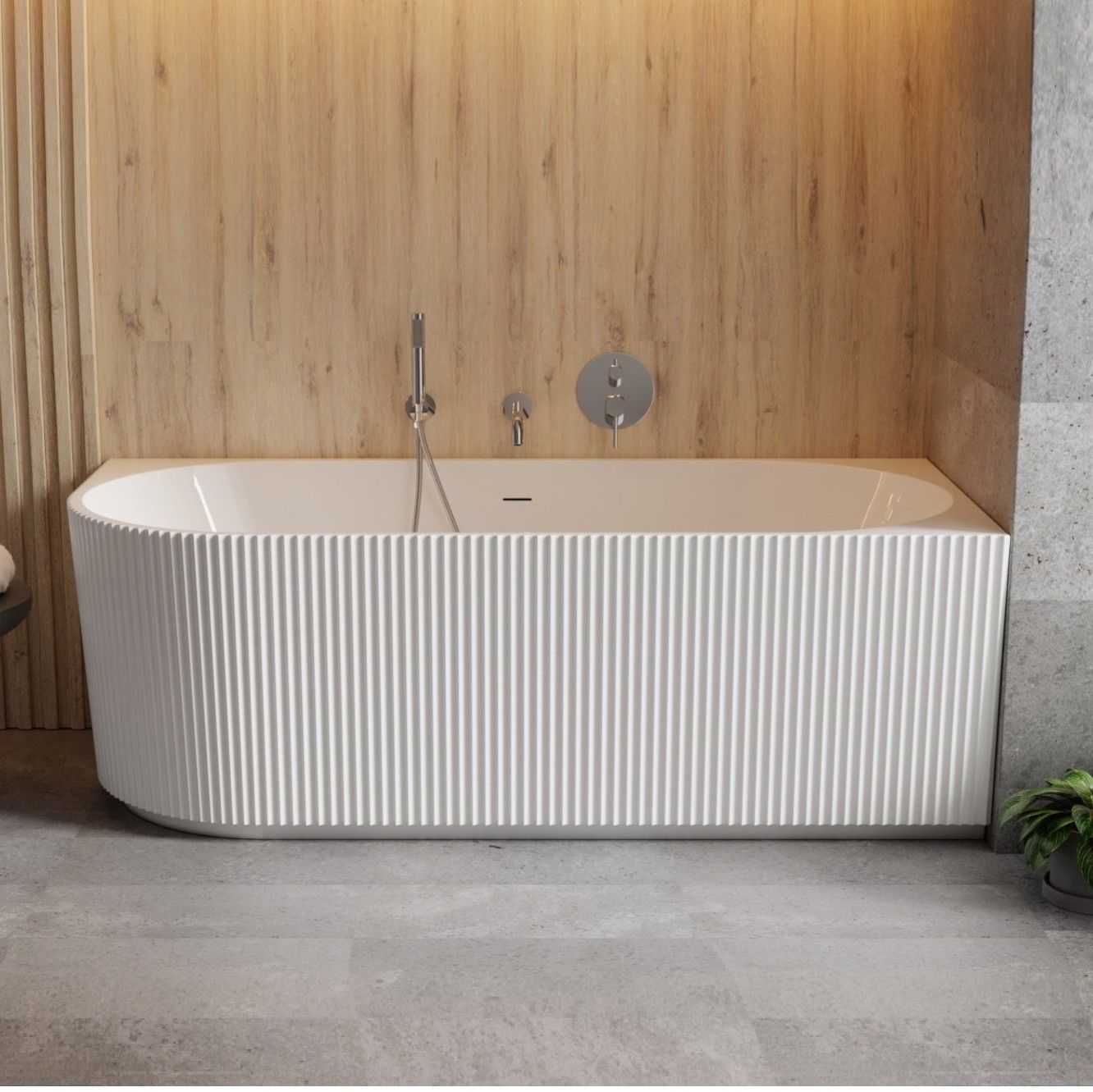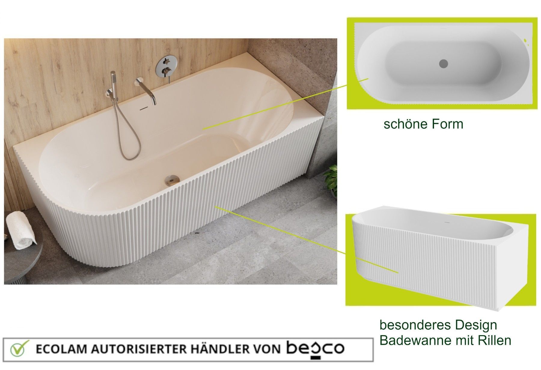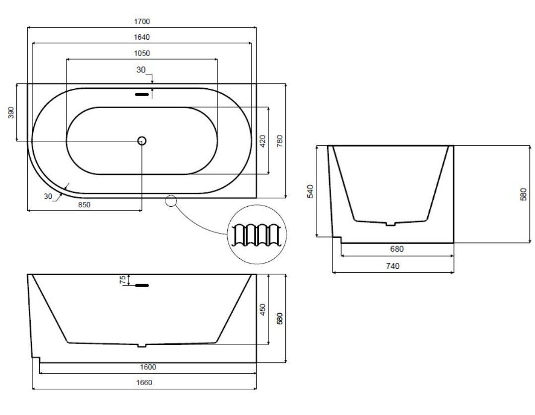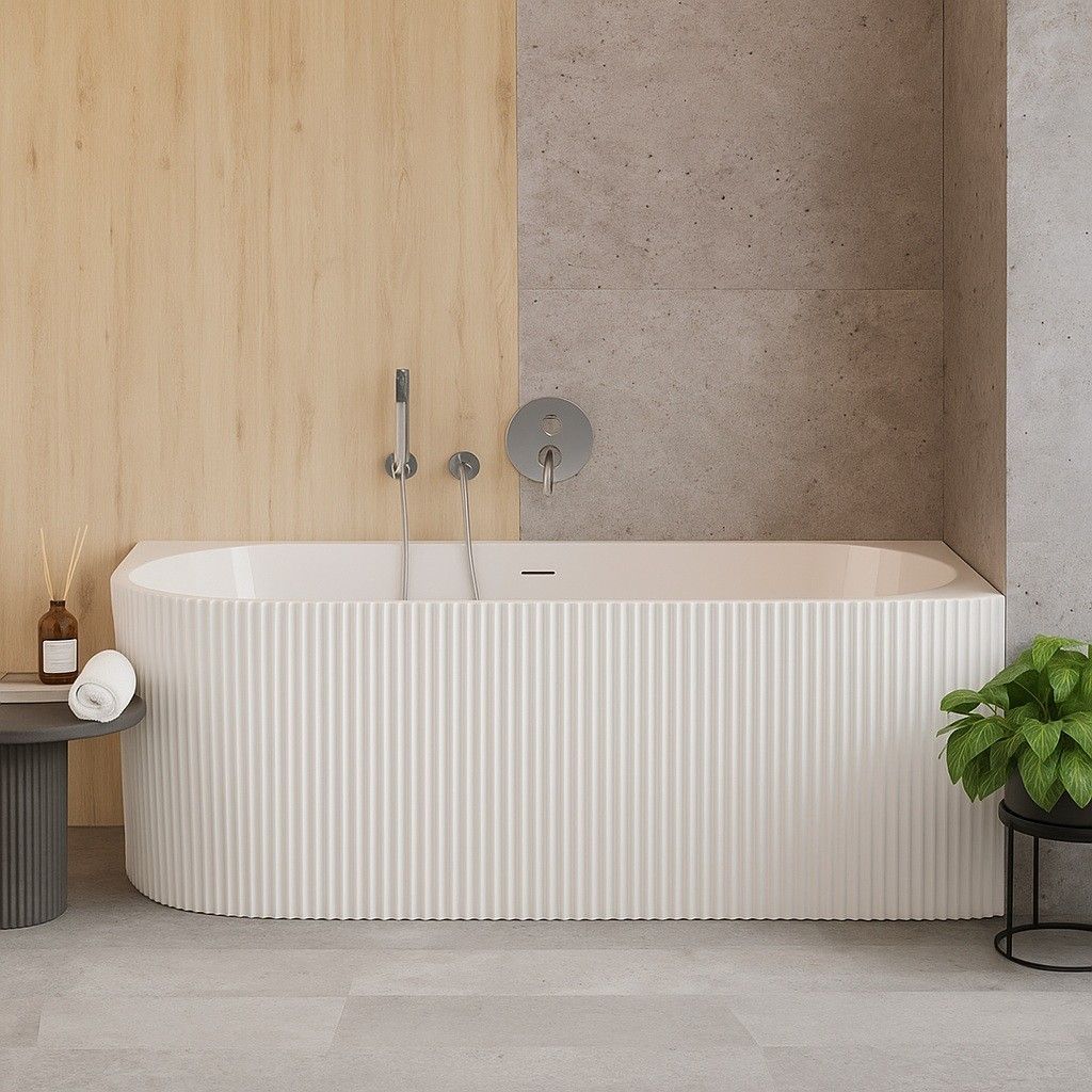 ECOLAM freistehende Badewanne Halb-Freistehend 170x78cm rechts Wandbadewanne Denaya
