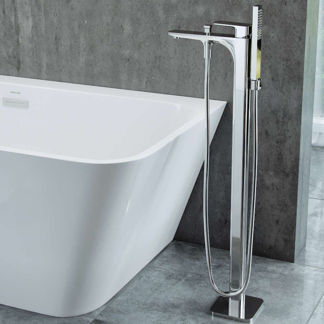 ECOLAM freistehende Standarmatur für Badewanne Wannenarmatur Keria Chrom glänzend