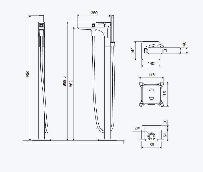 ECOLAM freistehende Standarmatur für Badewanne Wannenarmatur Keria schwarz matt