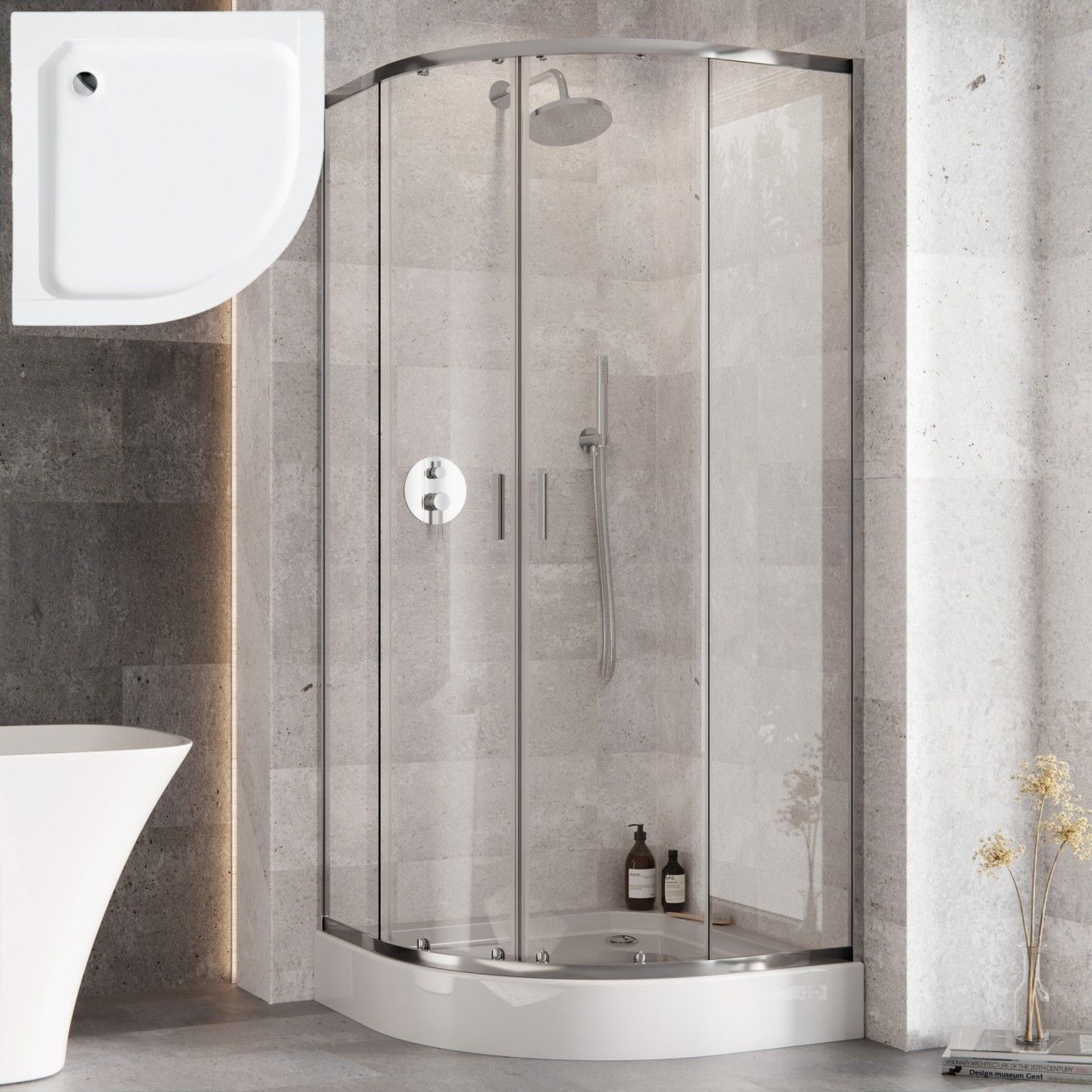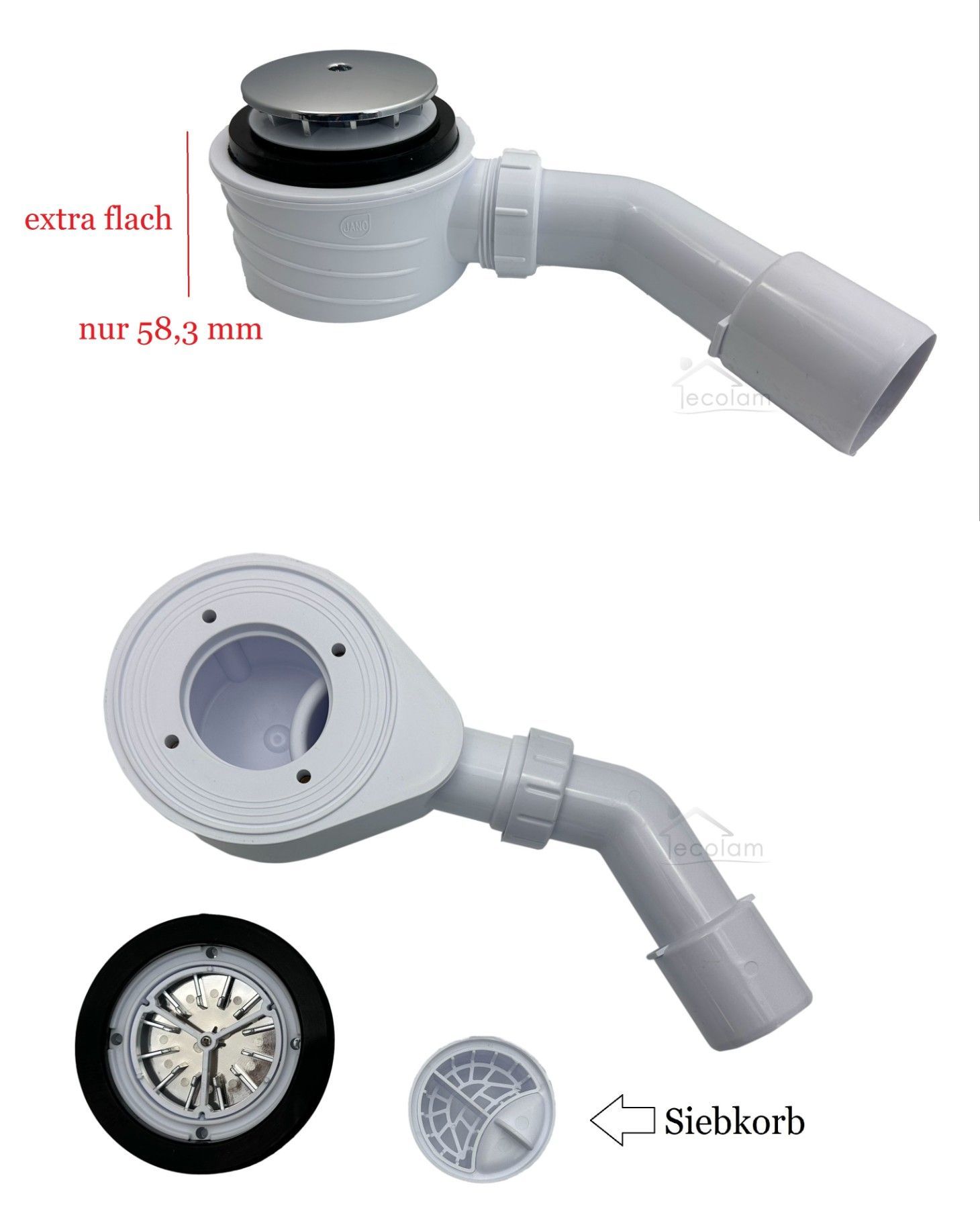 ECOLAM Set Duschkabine Zarya Duschwanne 90x90 Duschtasse Alex weiß + Siphon