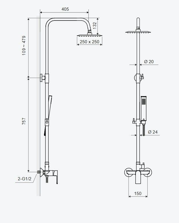 ECOLAM Set Duschsystem Handbrause Armatur Dusche Regendusche Stange GLAD Rain Chrom