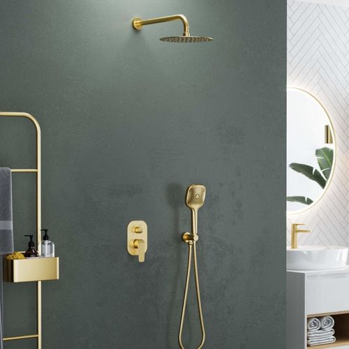 ECOLAM Unterputz Set Duschsystem Handbrause Armatur Dusche Regendusche Clever in Gold