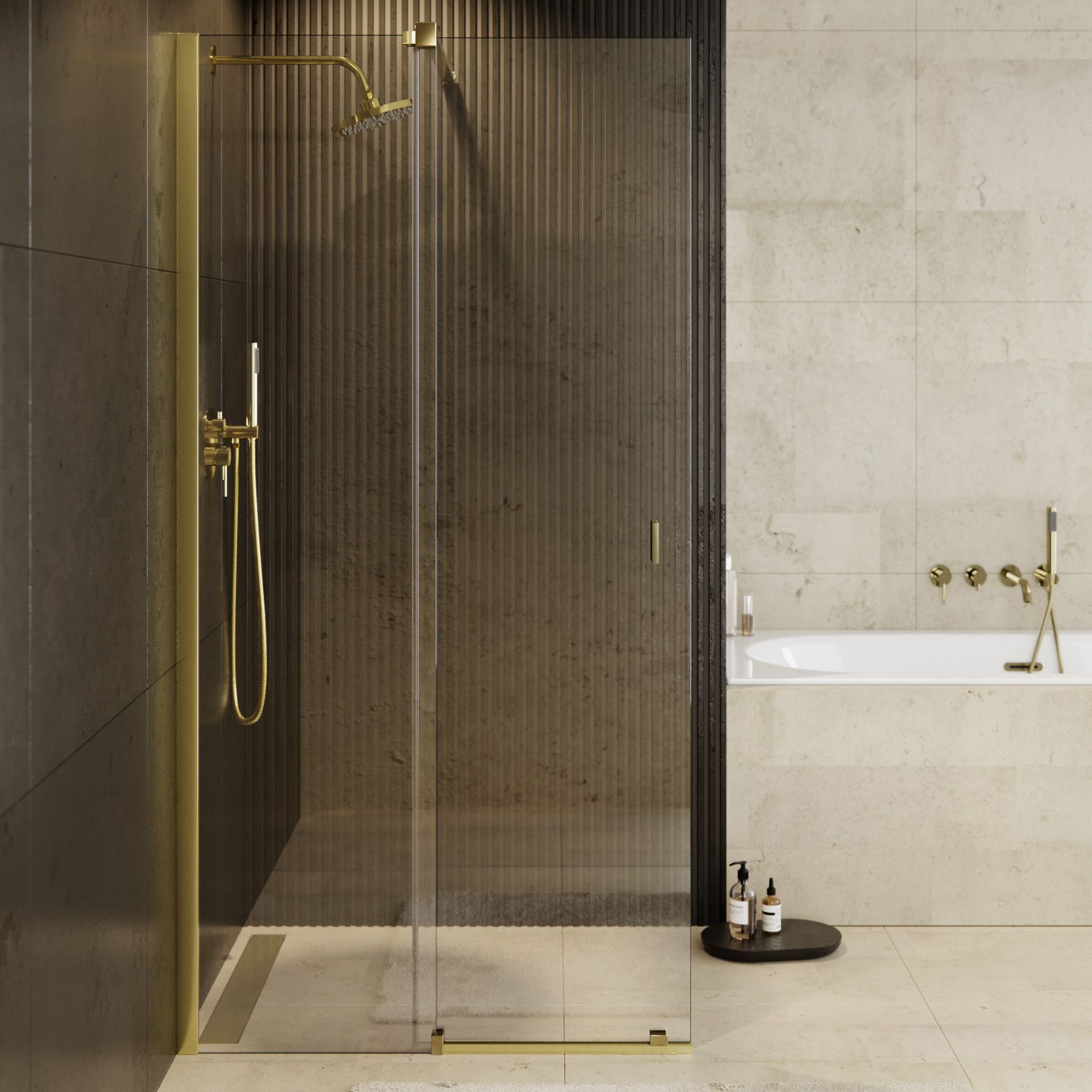 ECOLAM WALK IN Duschwand Duschabtrennung Duschkabine Glas 90-140cm Schiebetür Gold