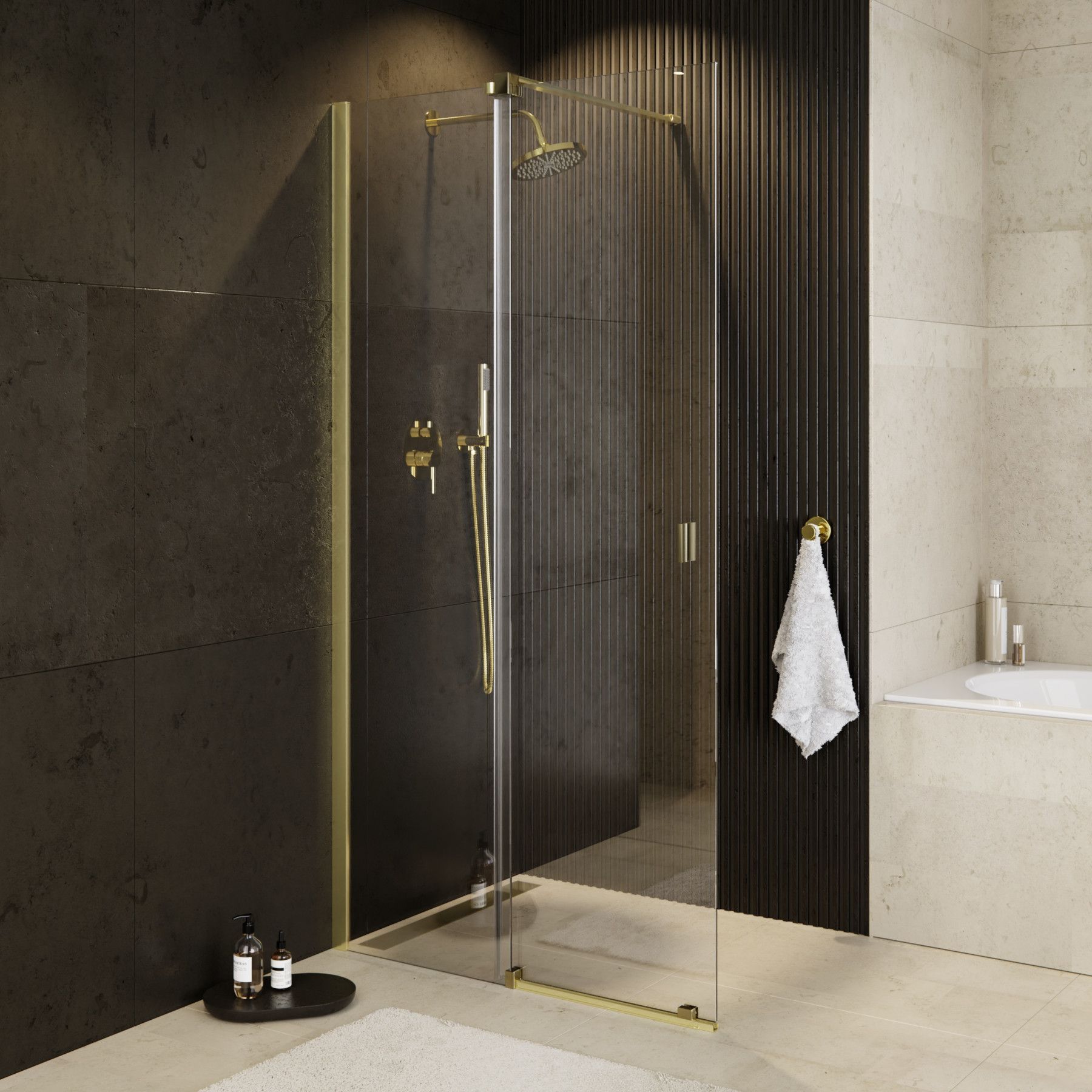 Walk In Dusche Vayo Echtglas Profile Gold Schiebetür mit einer innovativen ProClean-Beschichtung KOSTENLOSER VERSAND INNERHALB DEUTSCHLANDS;
