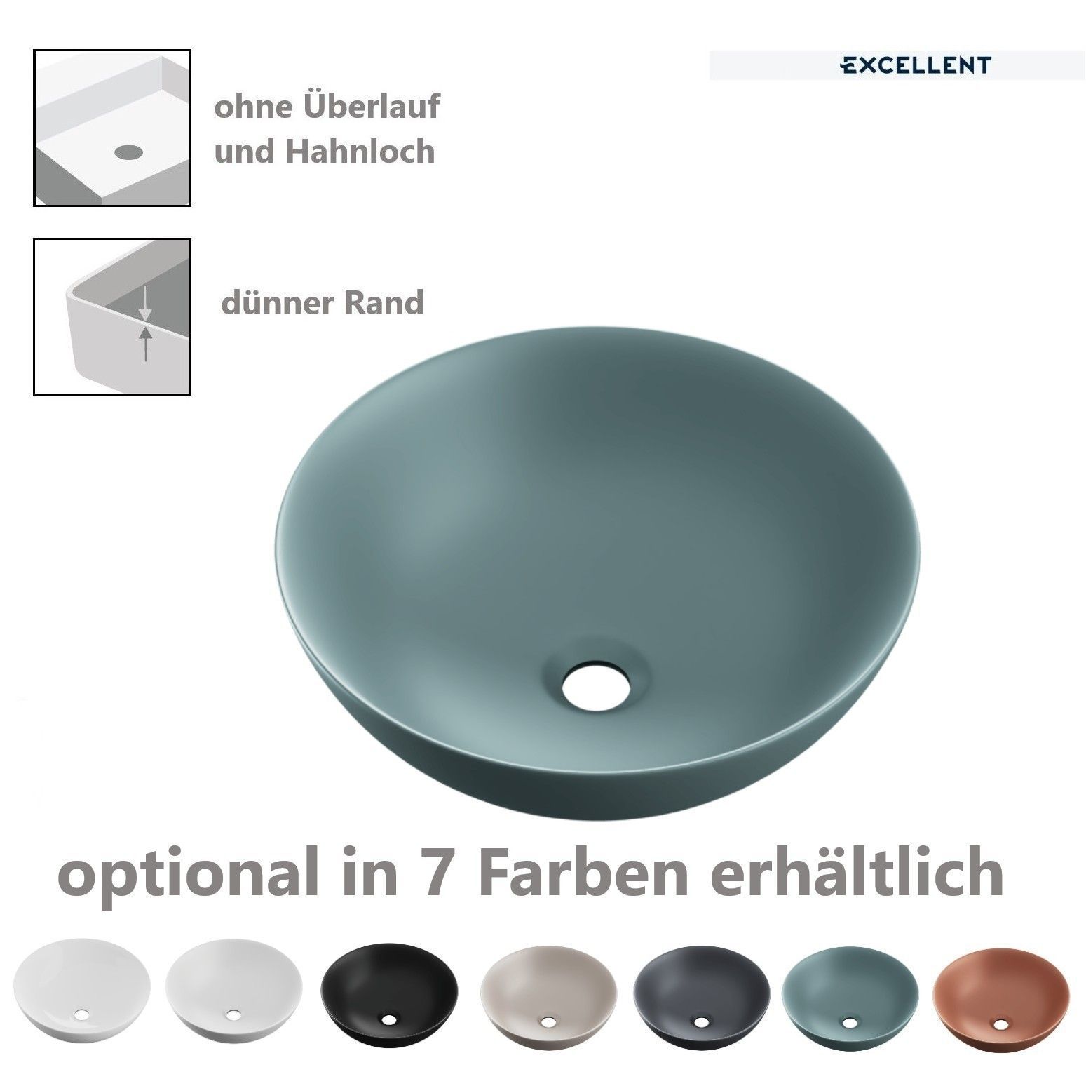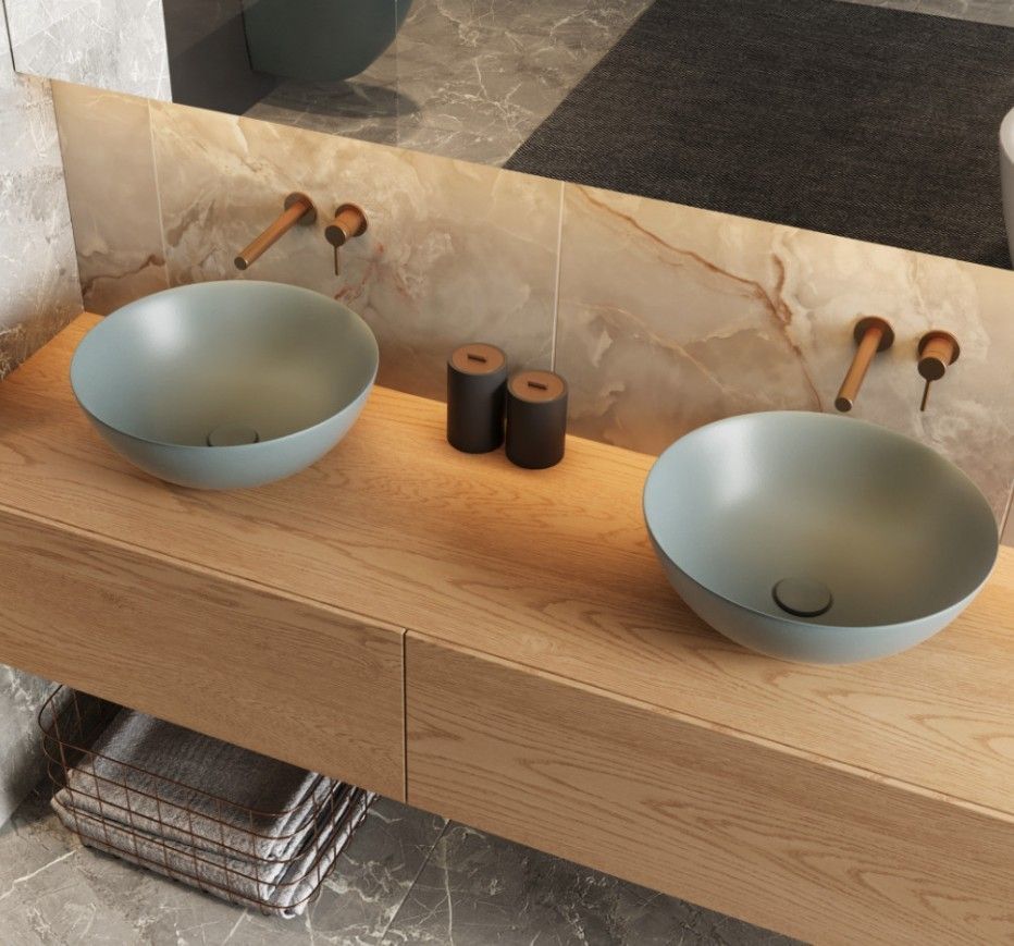 Das Aufsatzwaschbecken Luqa überzeugt durch seine runde Form (Ø 40 cm), einen extra dünnen Rand und ein minimalistisches Design – ideal für modernes Badezimmer. Gefertigt aus hochwertiger Keramik bietet es maximale Gestaltungsfreiheit bei der Badplanung. Das Aufsatzwaschbecken Luqa bietet eine stillvolle und vielseitige Lösung für jedes Bad.