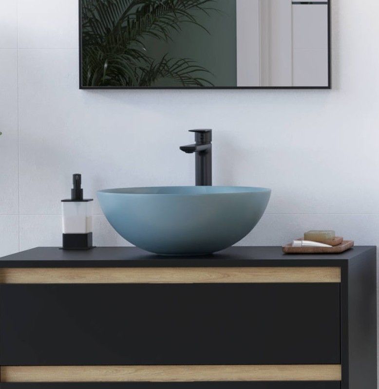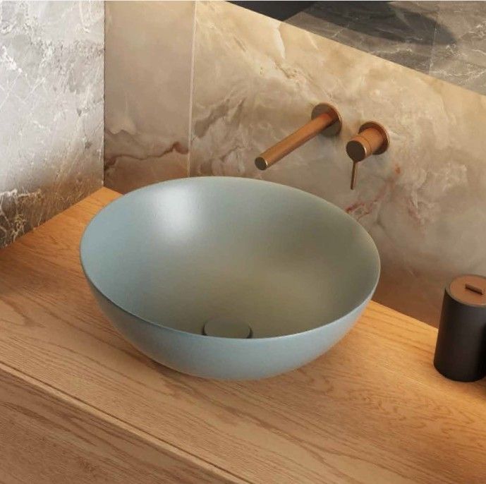 ECOLAM Waschbecken Luqa 40 cm rund blue mint matt Keramik Aufsatzwaschbecken Minzblau