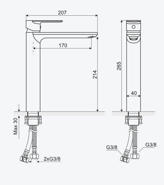 ECOLAM Waschtischarmatur hohe Armatur Wasserhahn Badarmatur GLAD Chrom Modern Design