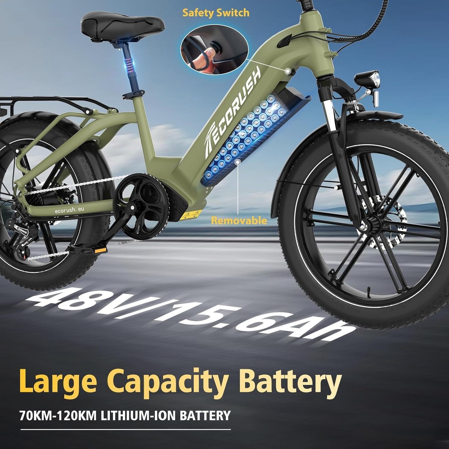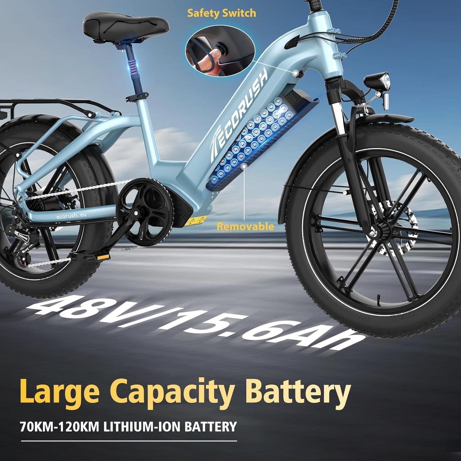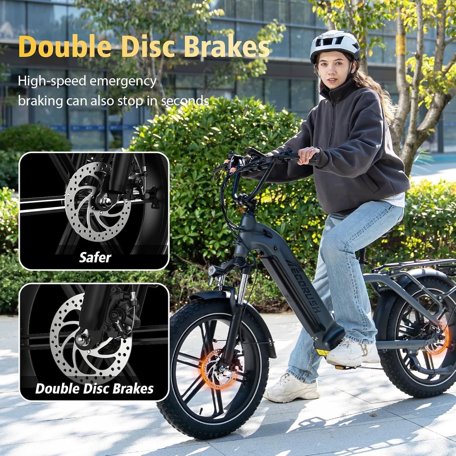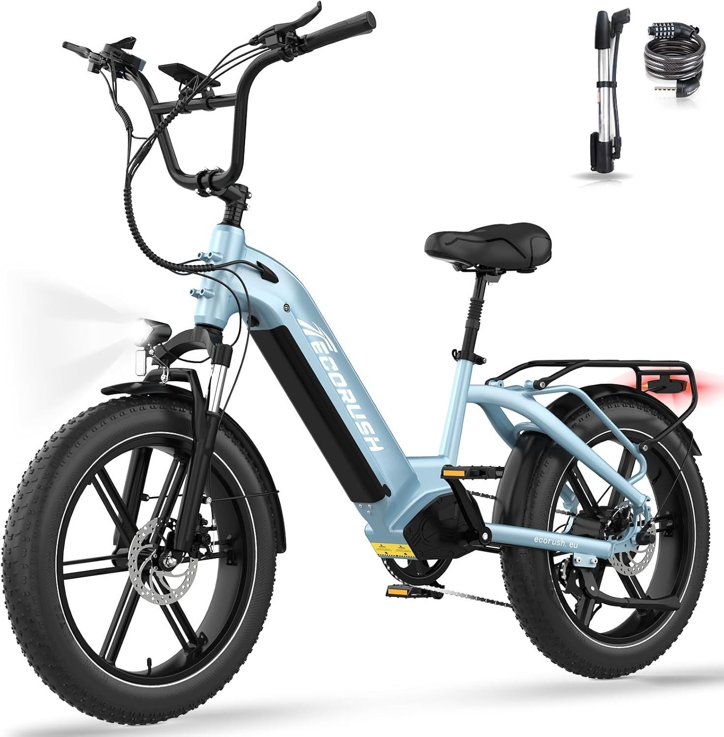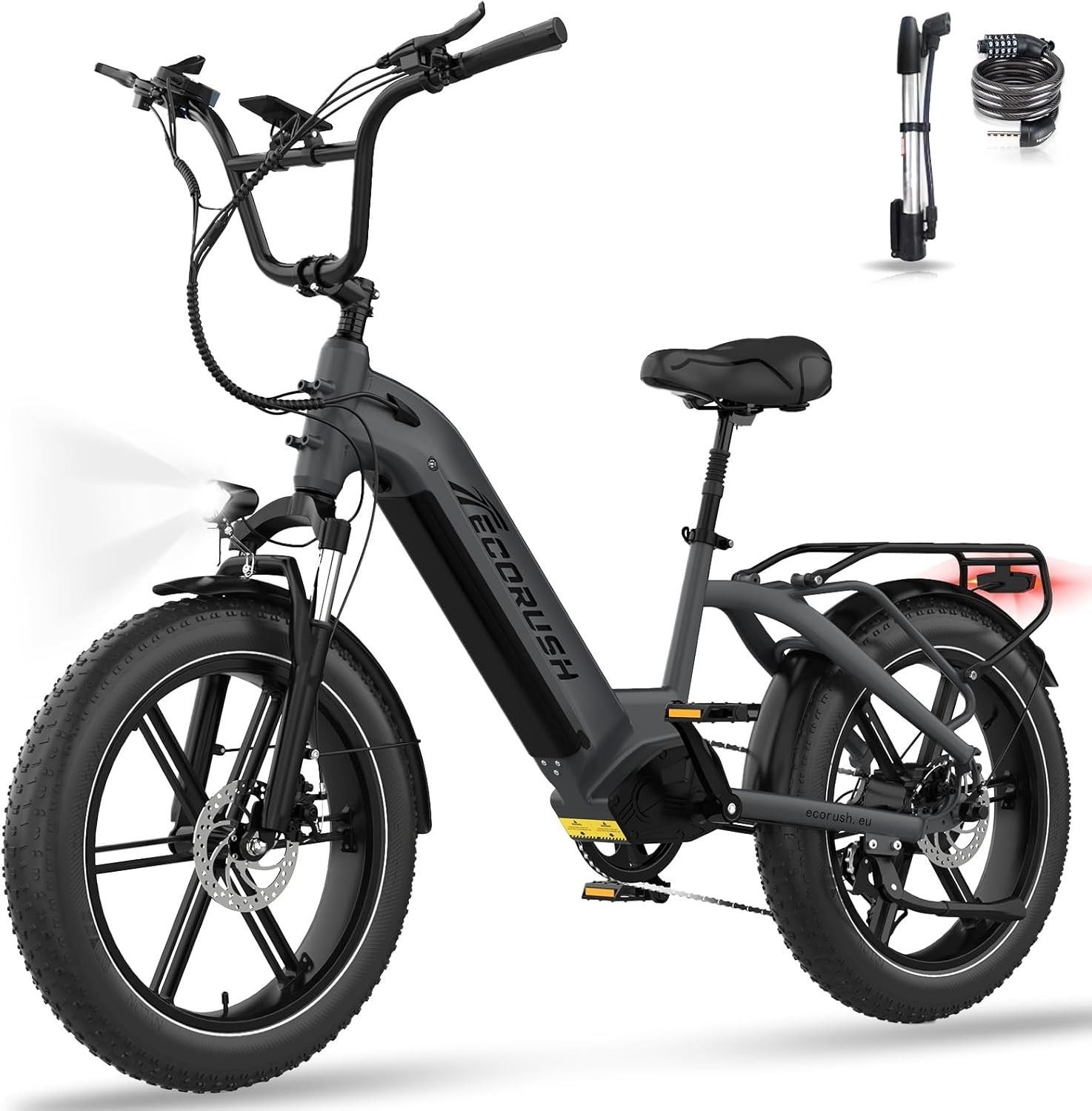 Ecorush E Bike Herren Damen,48V15.6Ah, -Bike 20 * 4.0 Zoll, lektrofahrräder 250W