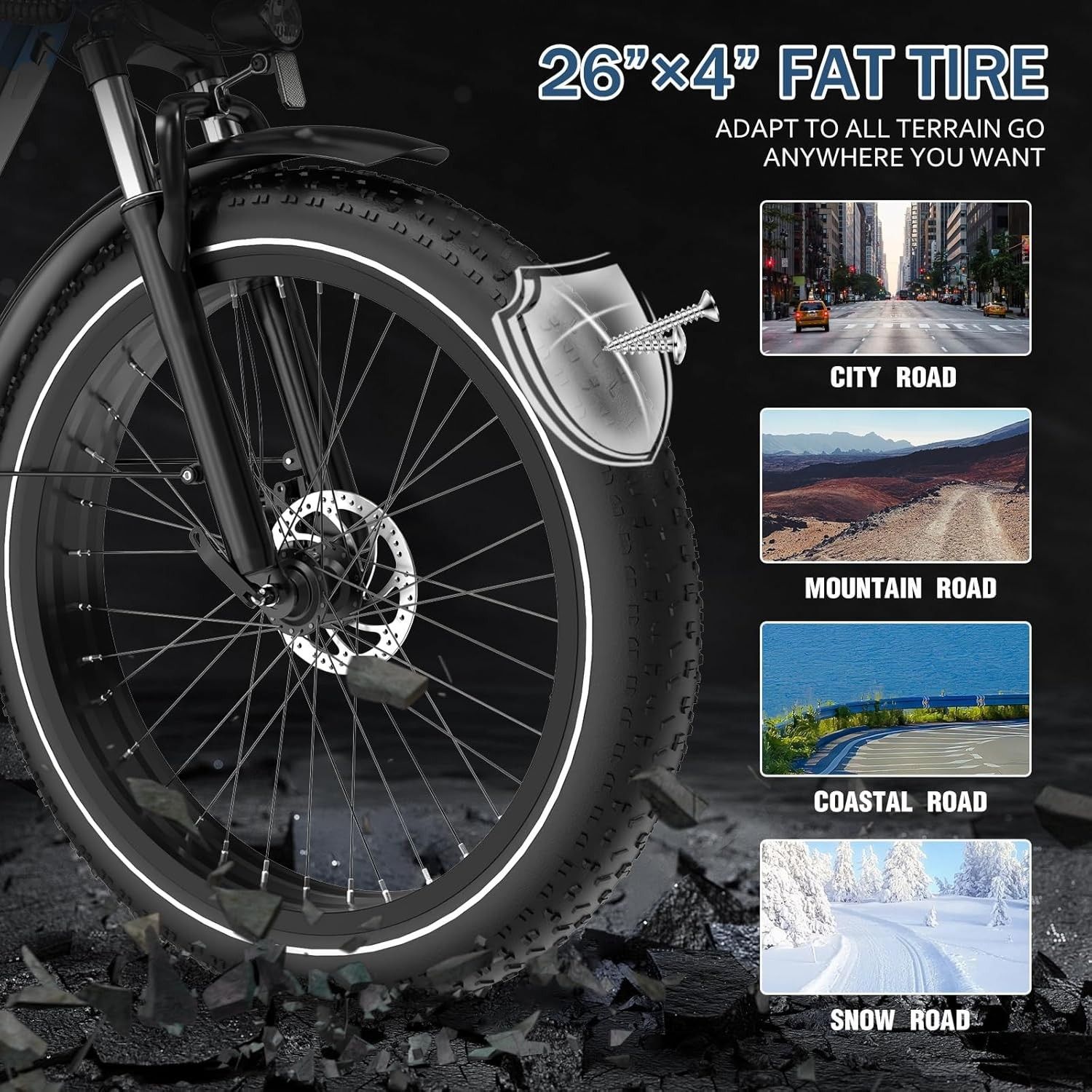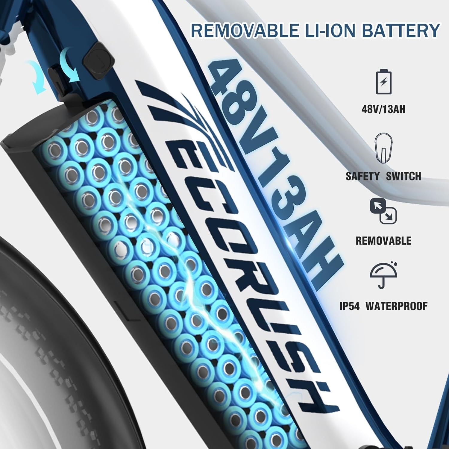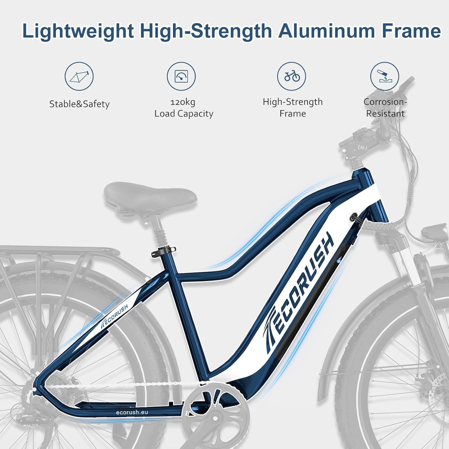 Ecorush E Bike Herren, Ebike mit 48V 13Ah, lektrofahrräder 26 * 4.0 Zoll,250W