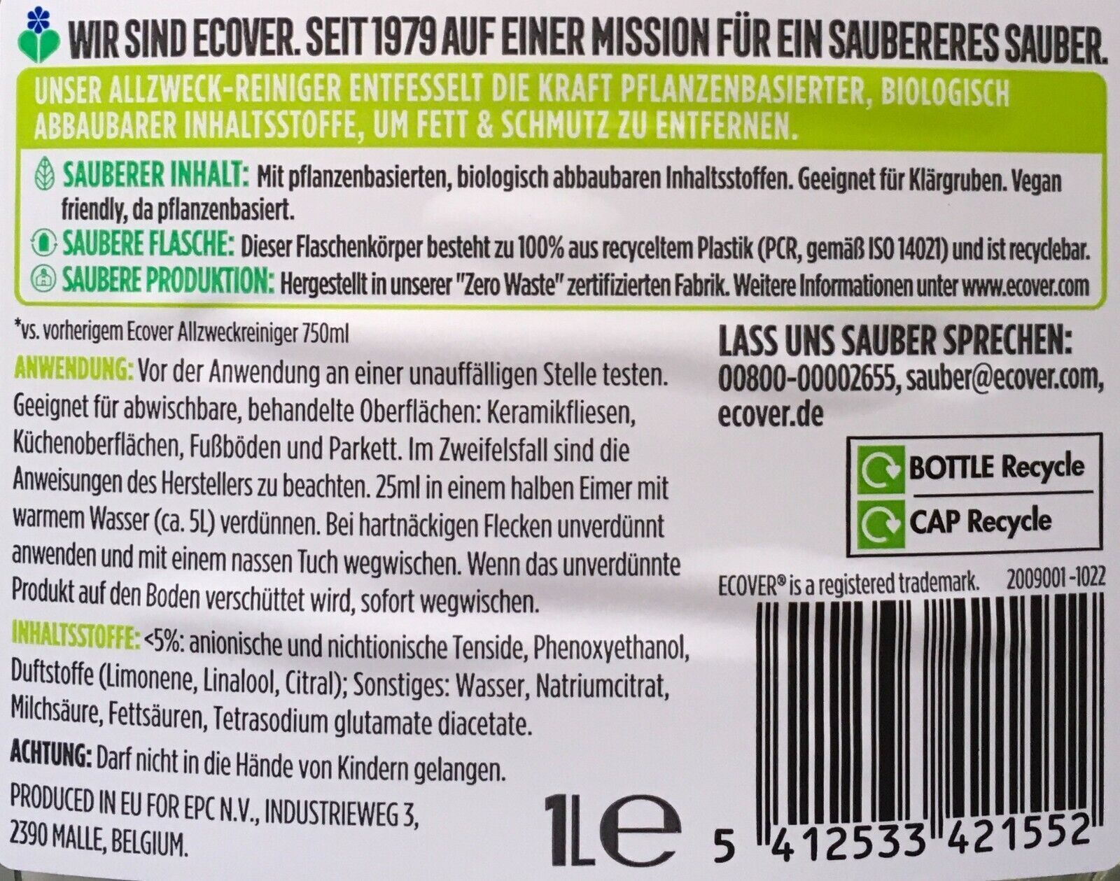 ECOVER Allzweck-Reiniger Zitronengras&Ingwer 1 L Flasche 6er Pack (Gr. Normal)