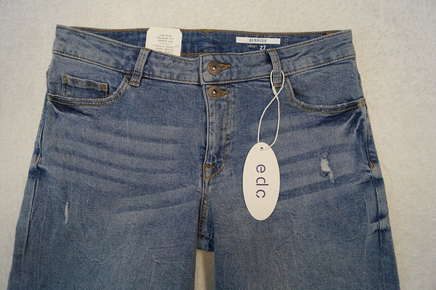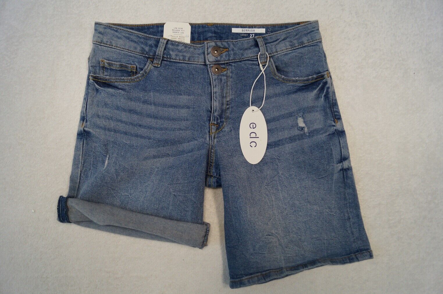 edc by ESPRIT Bermuda Jeansshort s Shorts aus Stretchdenim. W 27, 28 - Low rise - Relaxed Fit - Shorts Leg Farbe: blau Material: 99%Baumwolle ,1%Elasthan NEU mit Etikett UVP: 39,99 Euro Textilpflege: 40° Maschinenwäsche Beim Kauf von mehreren Artikeln wird nur einmalig Porto berechnet. (je nach