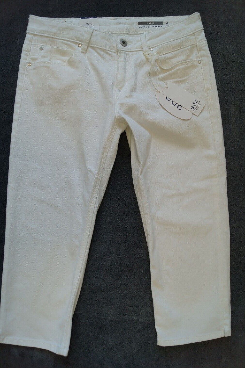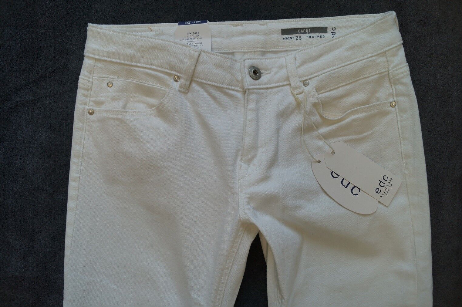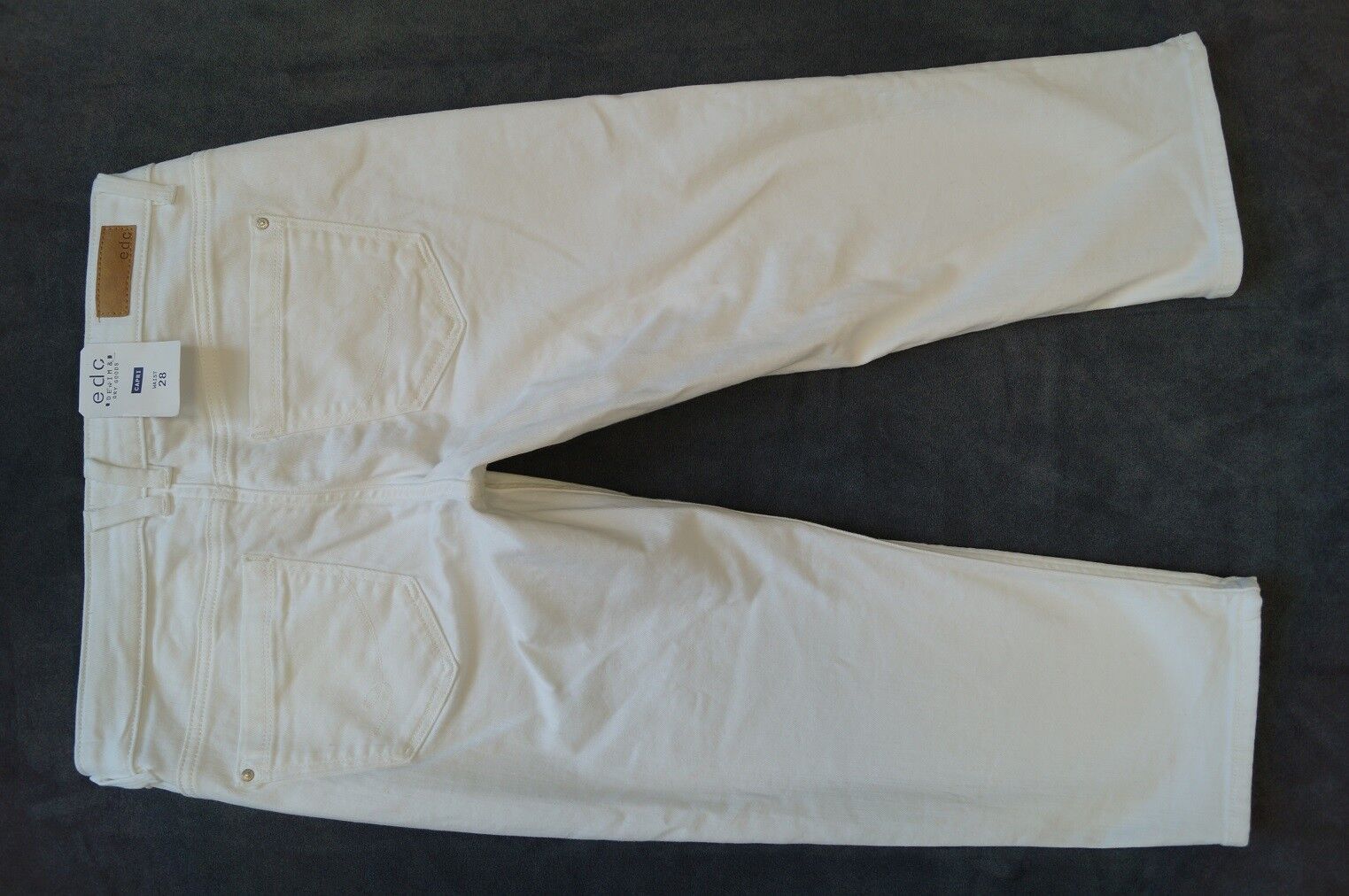 edc by ESPRIT Caprijeans Slim Fit 3 4 Jeans - Stretch W26, 27, 28, 31 Low Rise Cropped Leg Farbe: weiß oder blau Material: 98%Baumwolle,2%Elasthan Textilpflege: 40°C NEU mit Etikett UVP: 3 9,99 Euro Beim Kauf von mehreren Artikeln wird nur einmalig Porto berechnet.(je nach Packetgrösse). Rechtli