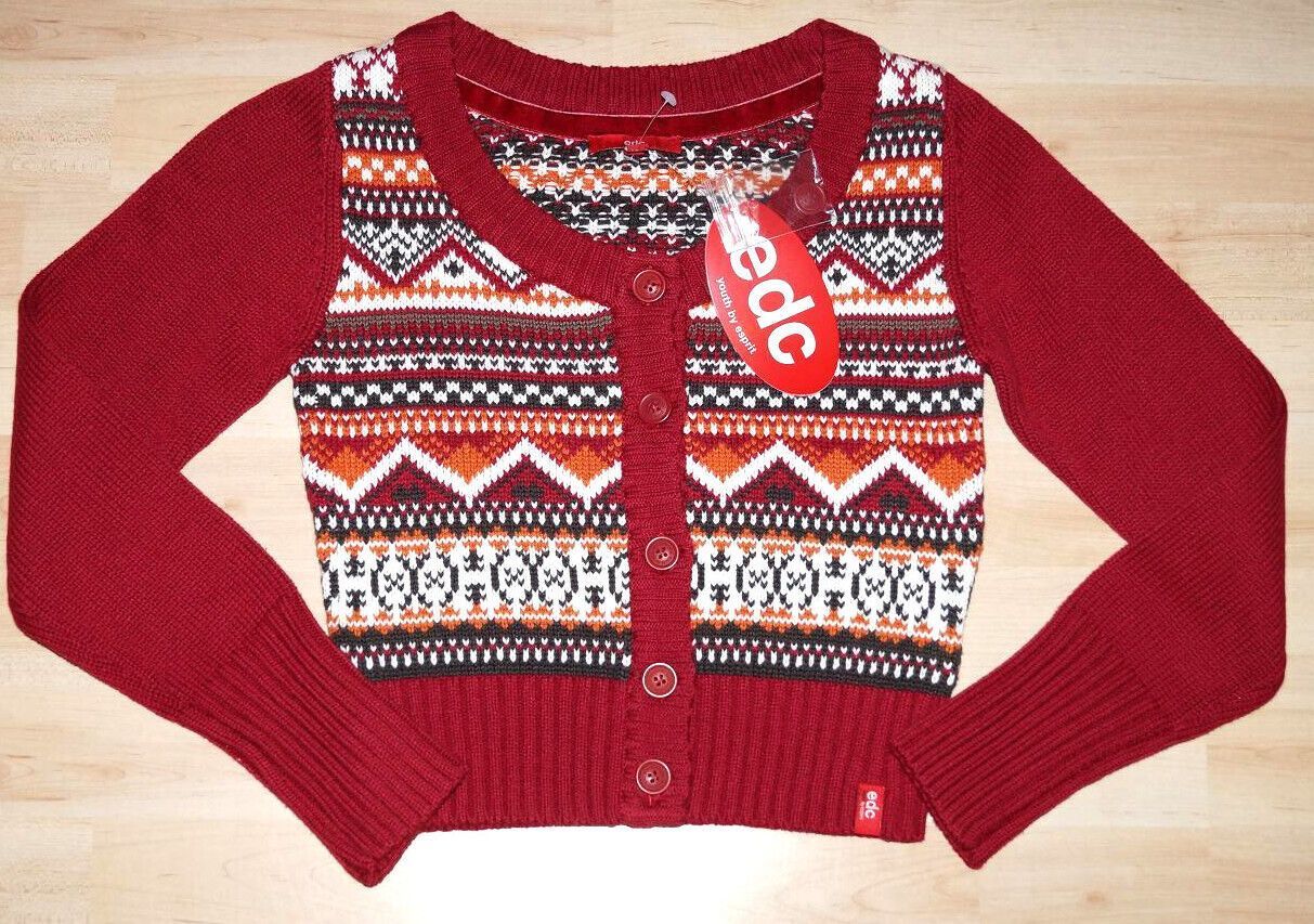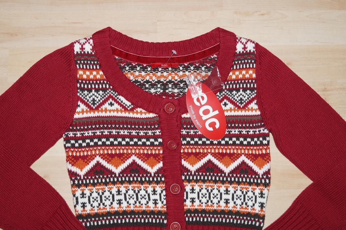 edc by ESPRIT Strickjacke Bolero Gr. S (140 146), M (152 158), L(164), XL (170 176). Gemusterte Strickjacke Farbe: beige oder rot Material:60%Baumwolle, 40%Polyacryl NEU mit Etikett UVP.: 3 9,95 Euro Beim Kauf von mehreren Artikeln wird nur einmalig Porto berechnet. (je nach Packetgrösse) Rechtliche