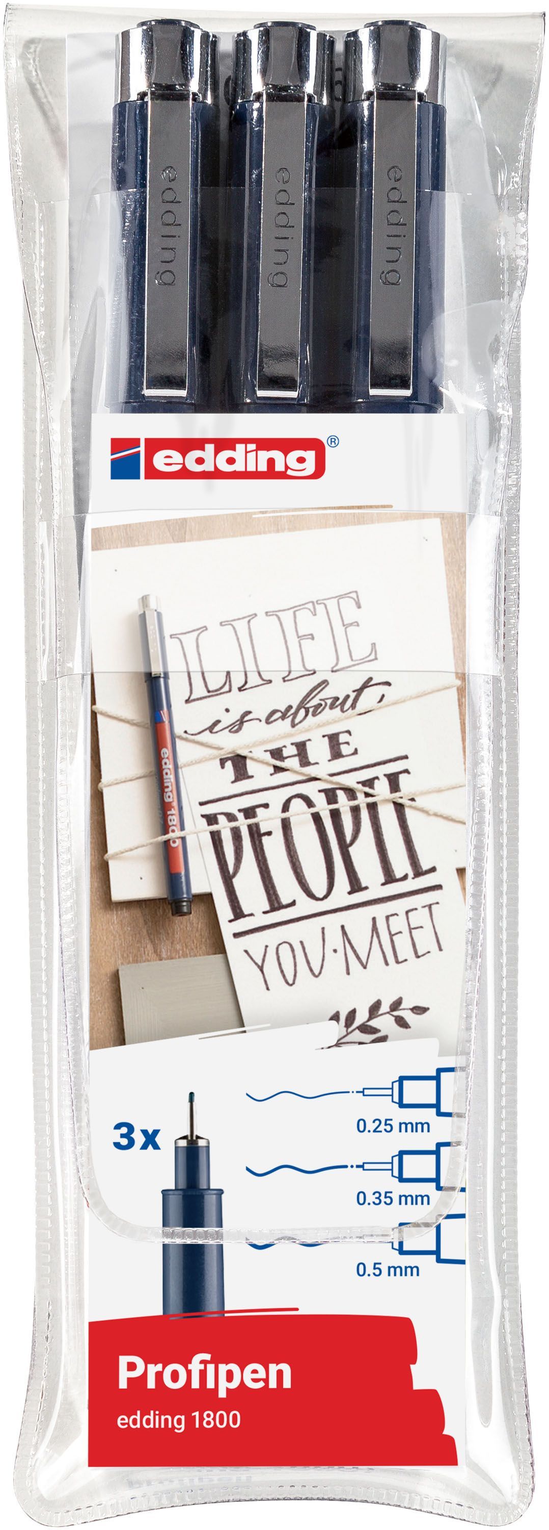 edding edding 1800 3 x Präzisionsfeinschreiber schwarz Strichbreite 0,25-0,5 mm