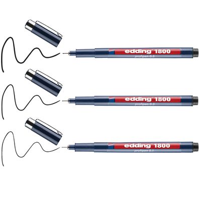 • edding 1800 3 x Präzisionsfeinschreiber schwarz Strichbreite 0,25-0,5 mm