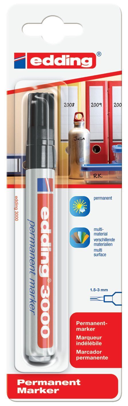 Edding Edding 4-3000-1-4001 3000 Permanentmarker - nachfüllbar, 1,5 - 3 mm, schwarz, Blister