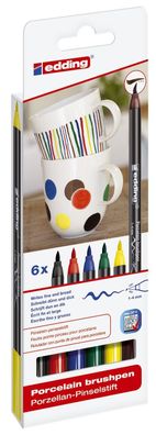 • Porzellan-Pinselstift 6er Set Colour Edding Flexible Pinselspitze