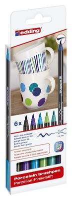 • Edding 4200.6099 Porzellan-Pinselstift - 1 - 4 mm, cool colour Set, 6 Farben sortiert