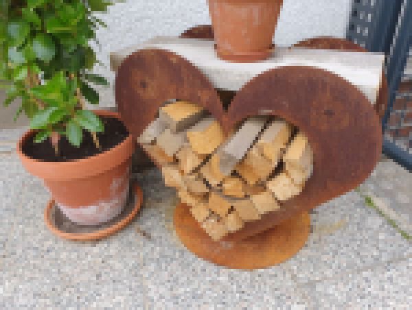 Edelrost Kaminholzregal Herz 44cm Brennholzregal Kaminholz Metall Feuerholzregal