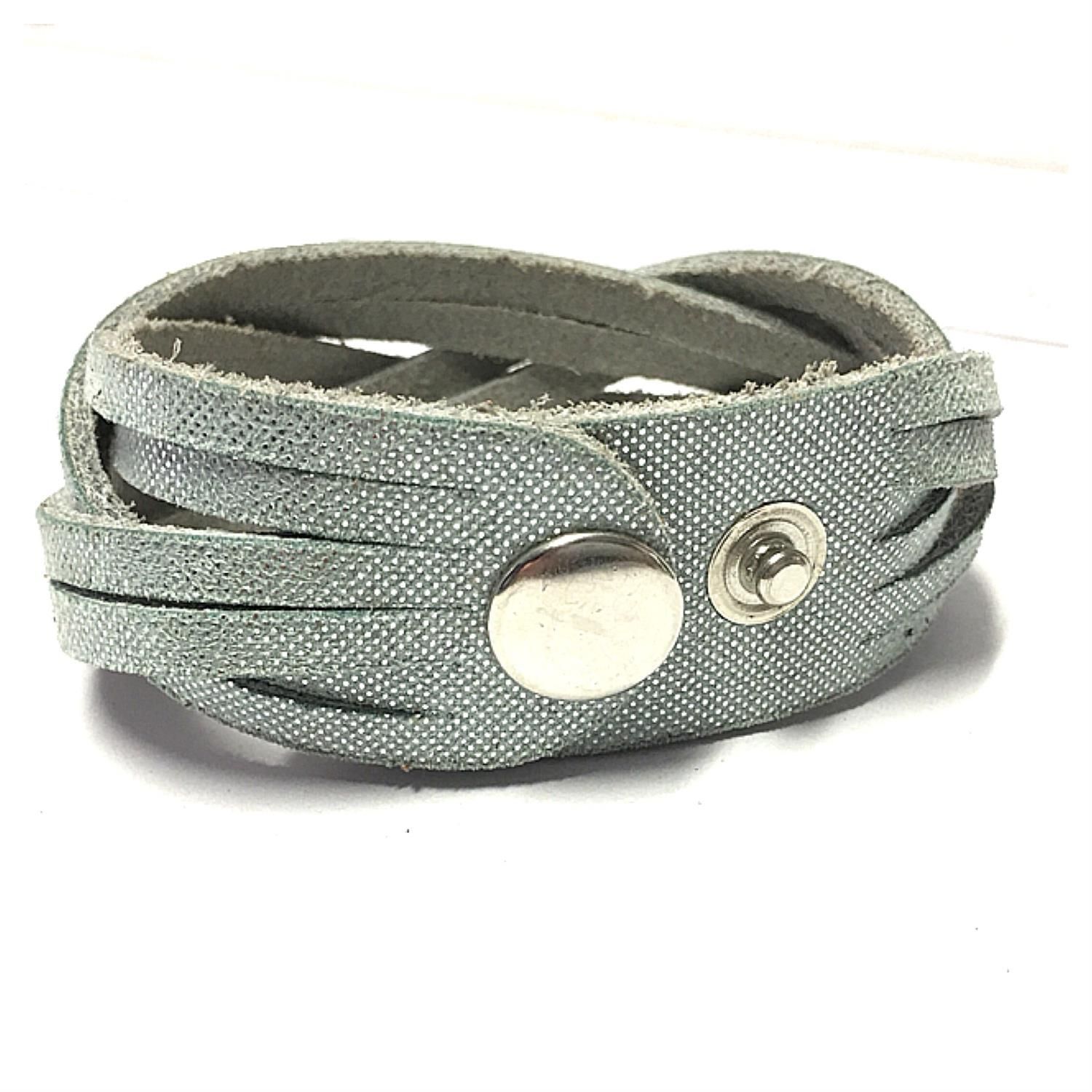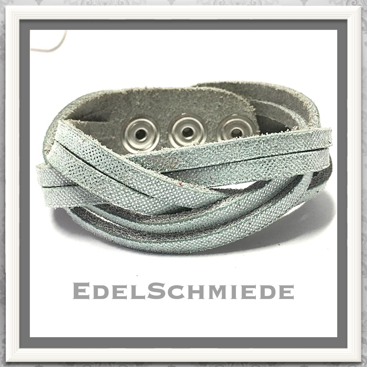 Edelschmiede925 graues Lederarmband mit Druckknopf Verschluß