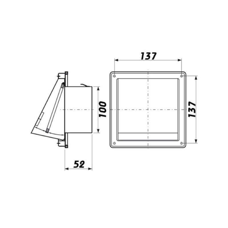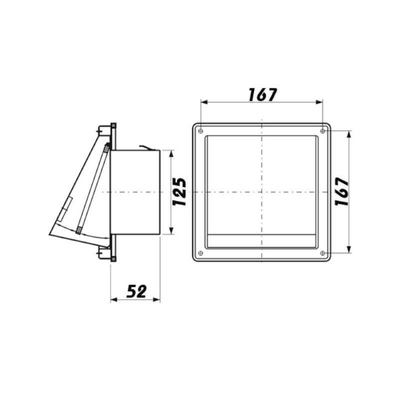Edelstahl Ablufthaube mit Rückstauklappe 150x150-180x180mm Anschluss Ø100-150mm