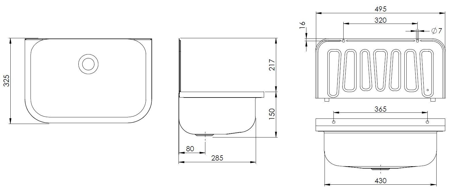 Quantex Edelstahl Ausgussbecken 495 x 325 mm, stabile Ausführung, 1mm, Ausgußbecken edelstahl
