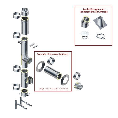 Solarbayer Edelstahl-Außenkamin/Schornstein 7,5m Doppelwandig Innendurchmesser 200mm 530050001