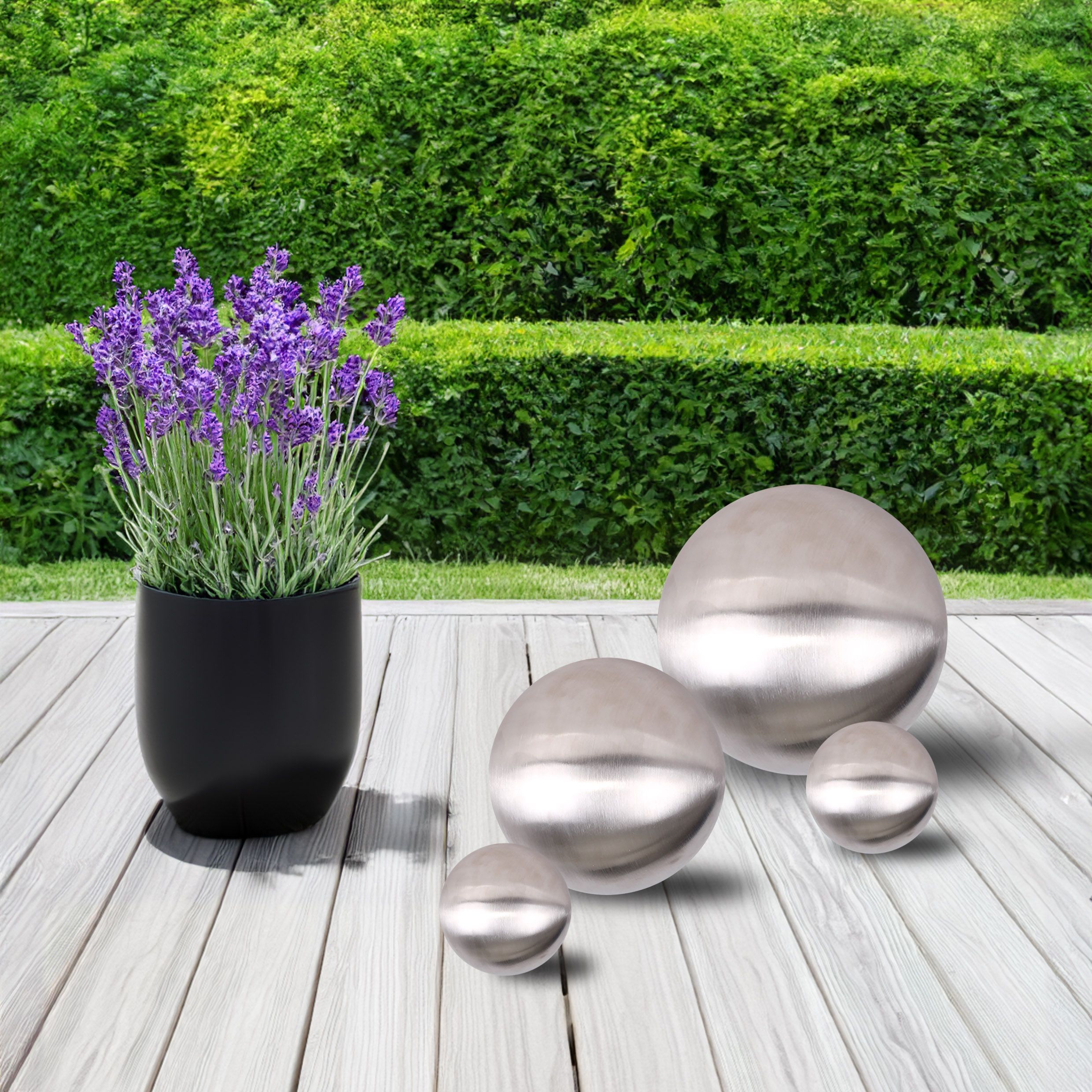 Edelstahl Dekokugel 4er Set silber matt - 10 / 15 / 20 cm - Garten Schwimm Kugel