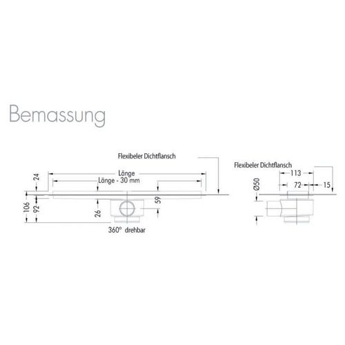 Edelstahl Duschrinne 50-120cm Komplett-Set, ESS Easydrain zum verfliesen