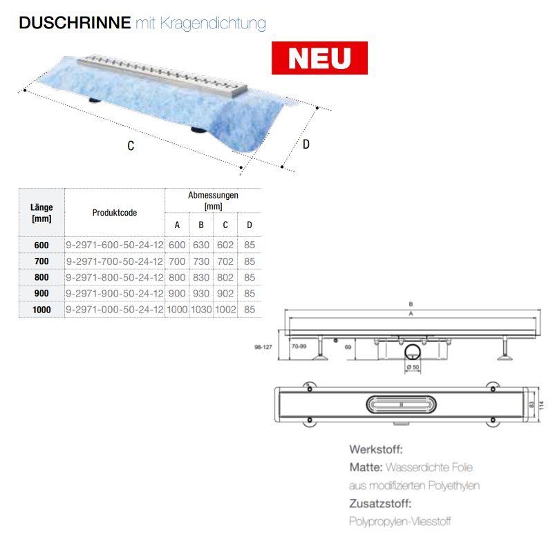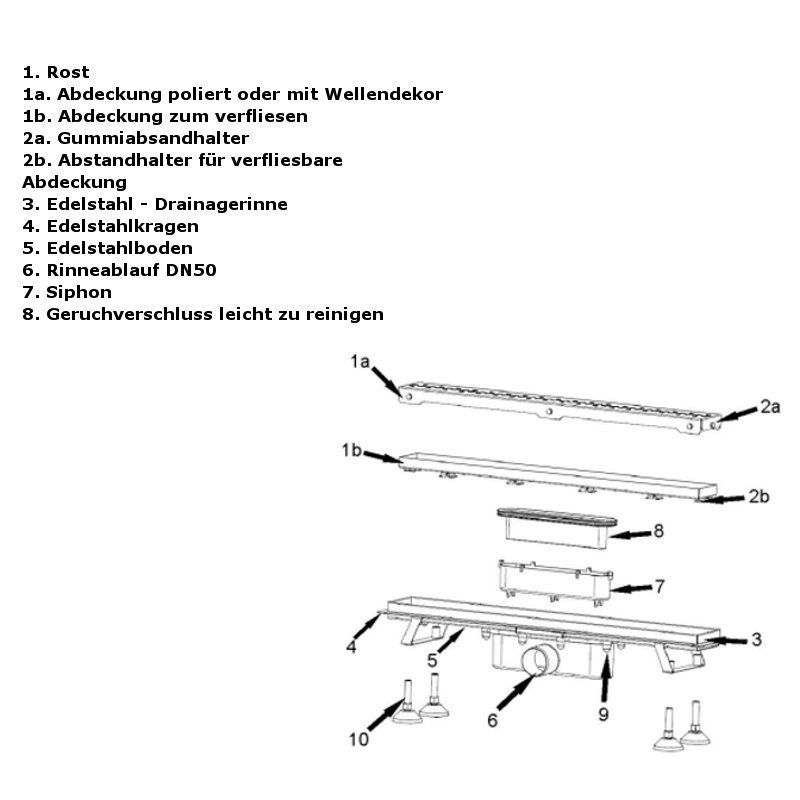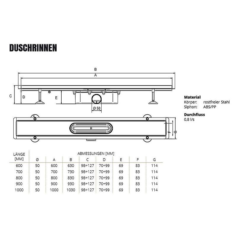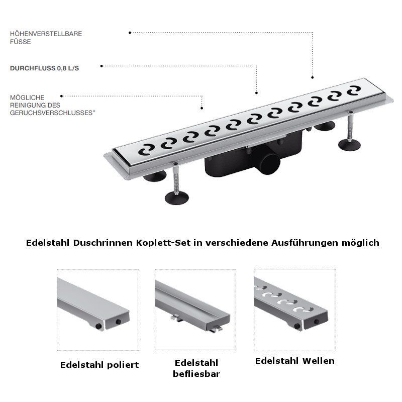 Edelstahl Duschrinne 60cm - 100cm, Abdeckung Welle poliert, komplett Set inkl. ...