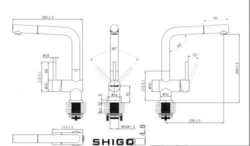 SHIGO Edelstahl Einhandmischer Auszugauslauf, gold