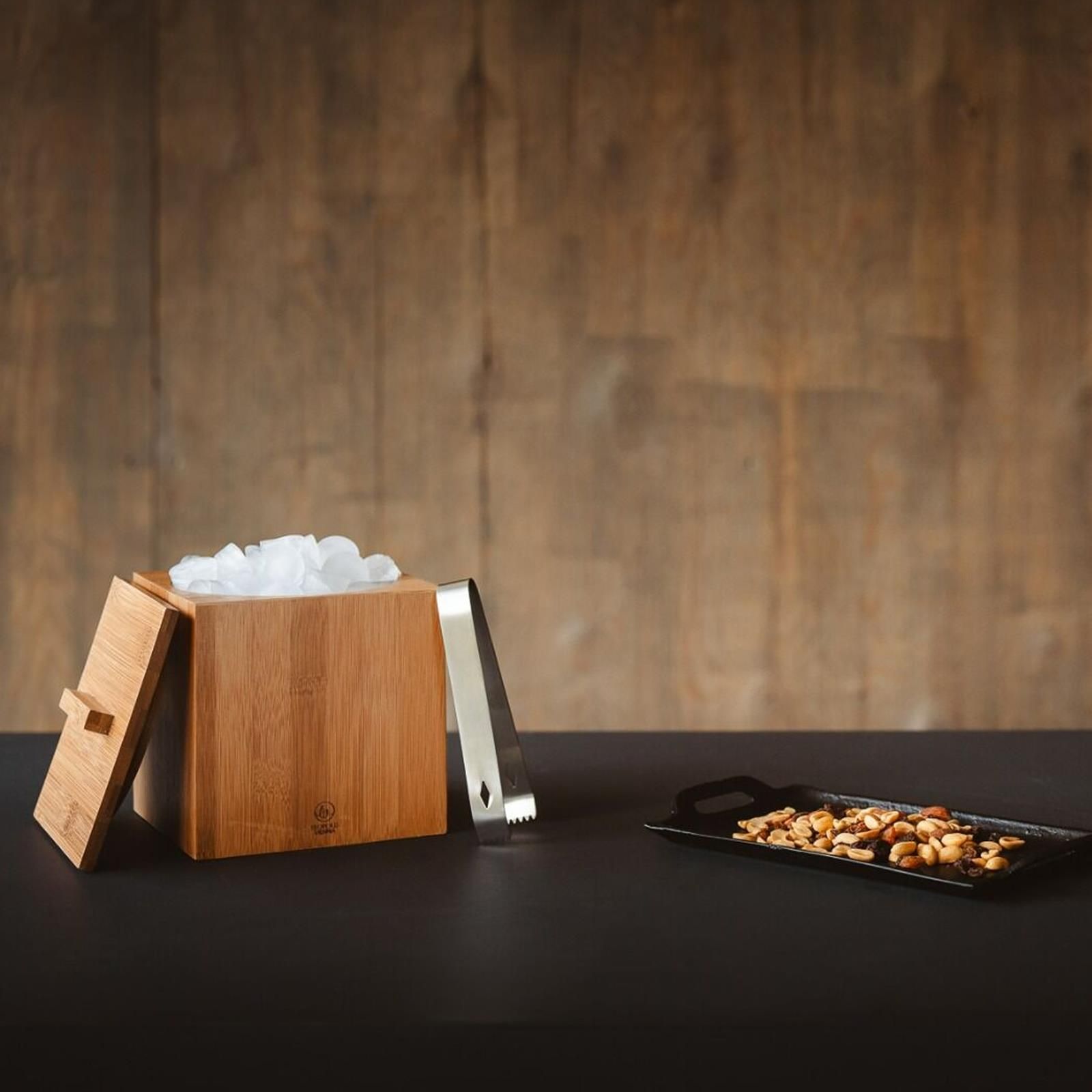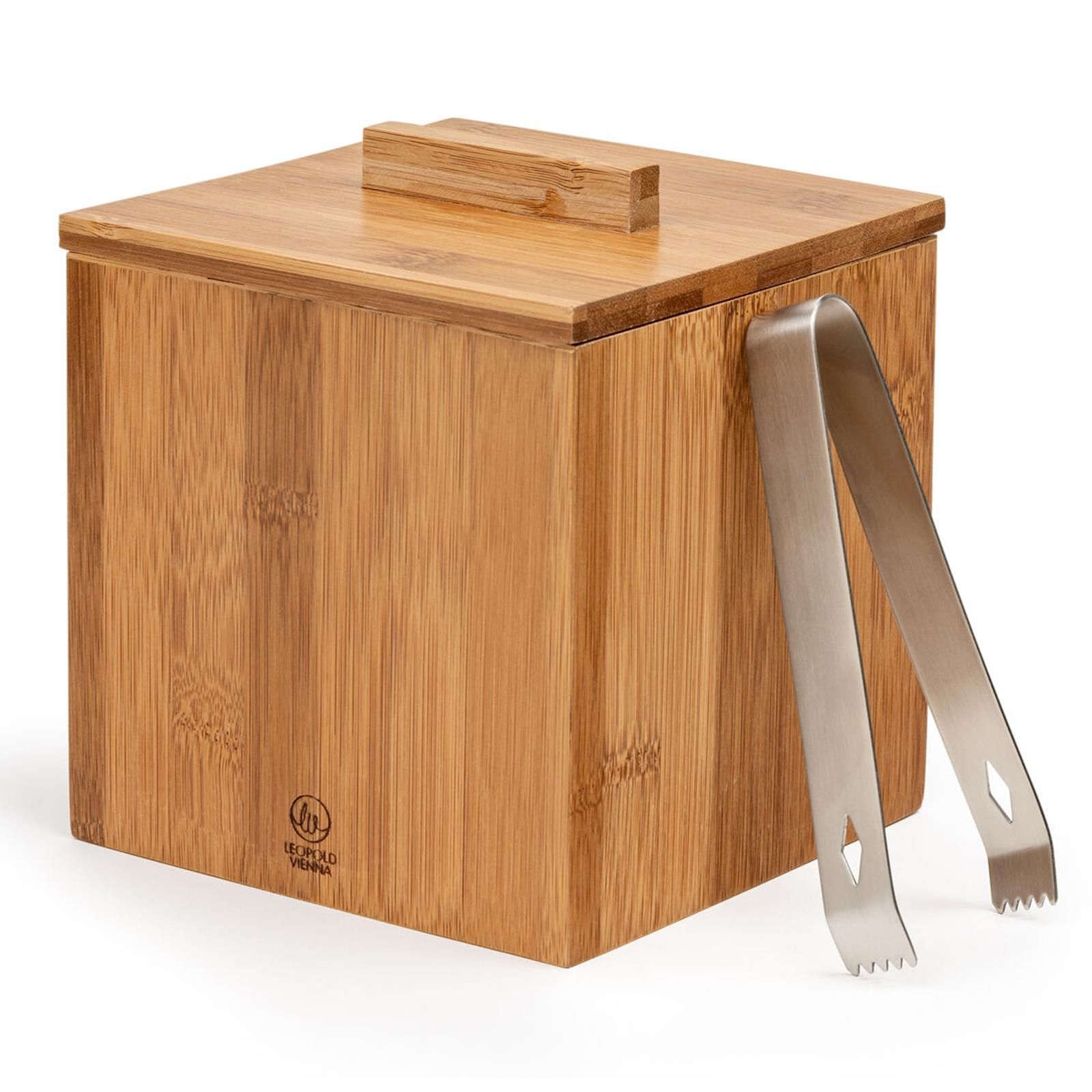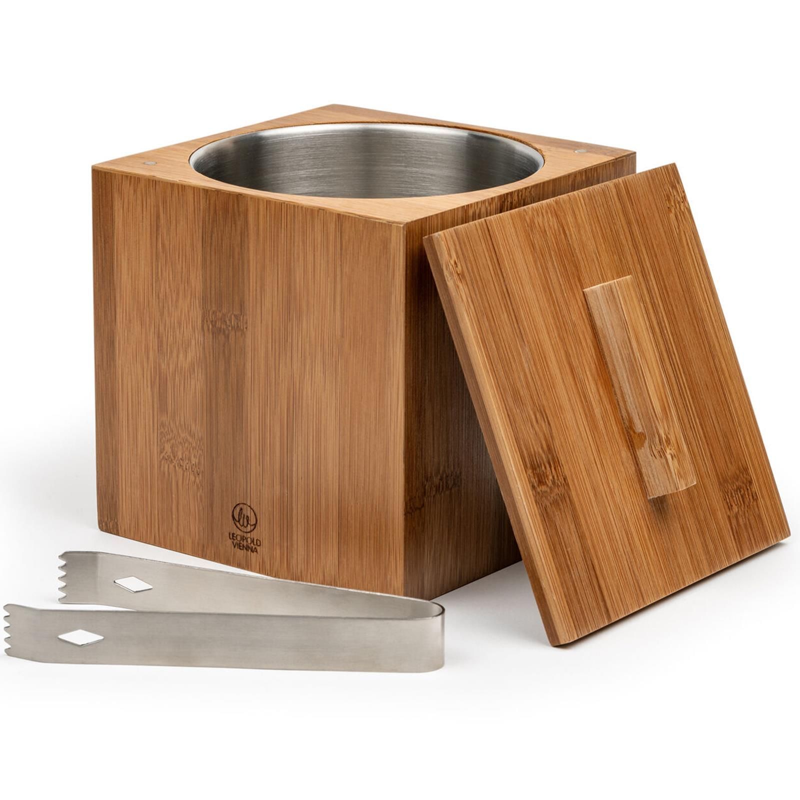 Leopold Vienna Edelstahl Eisbehälter 1,8 L doppelwandig mit Holz-Verkleidung Eiswürfeleimer