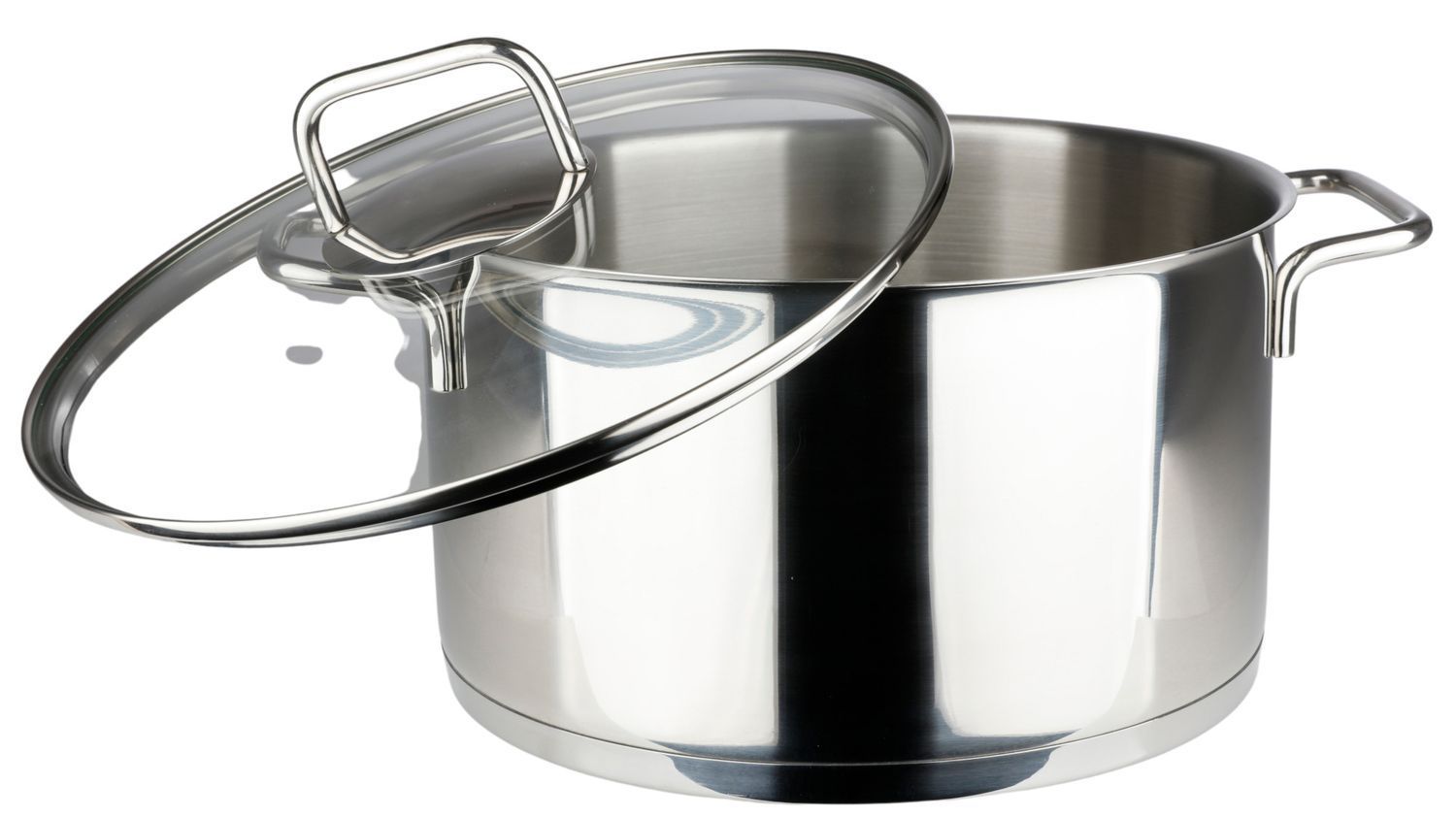 Edelstahl-Fleischtopf 6L mit Glasdeckel Kochtopf Suppentopf alle Herdarten