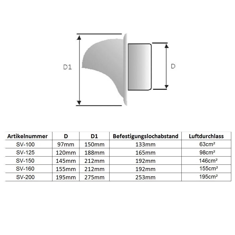 Edelstahl matt gebürstete Kugellufthaube Abluft- Zulufthaube Lüftungsrohr