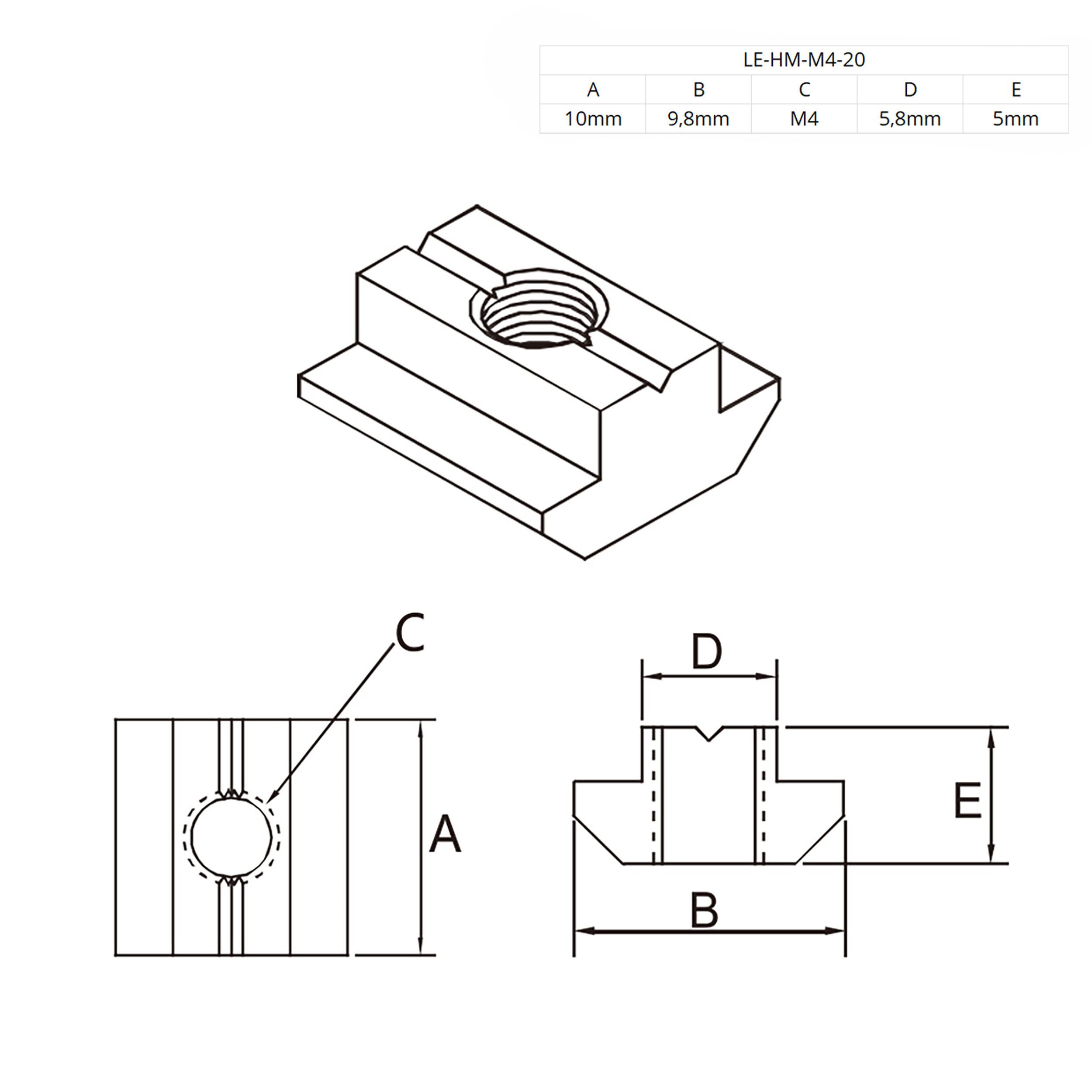Edelstahl Nutenstein schwer Gleitmutter M4 Nut 6 für Aluprofil 20-er