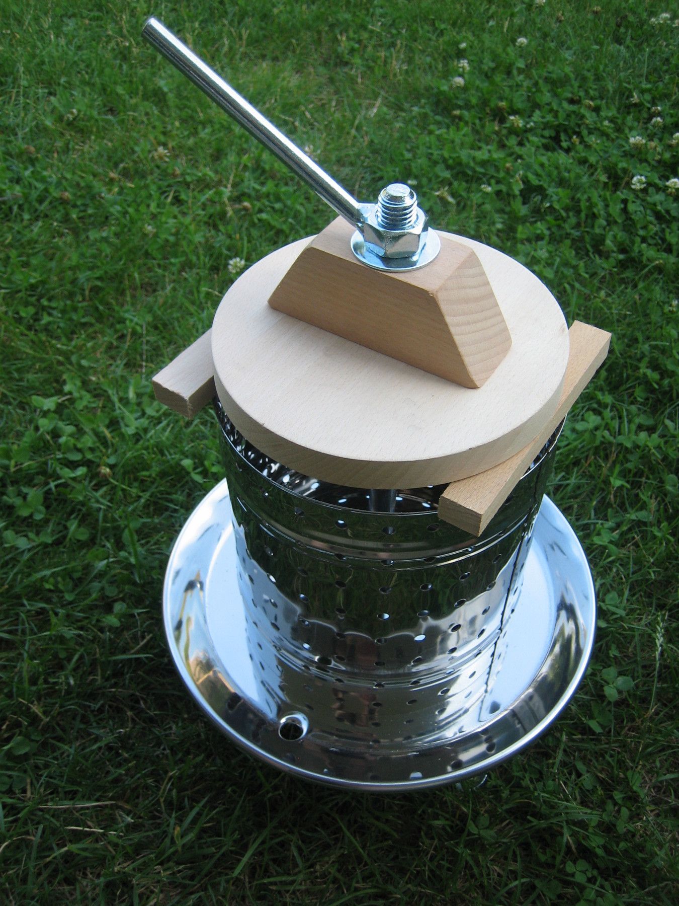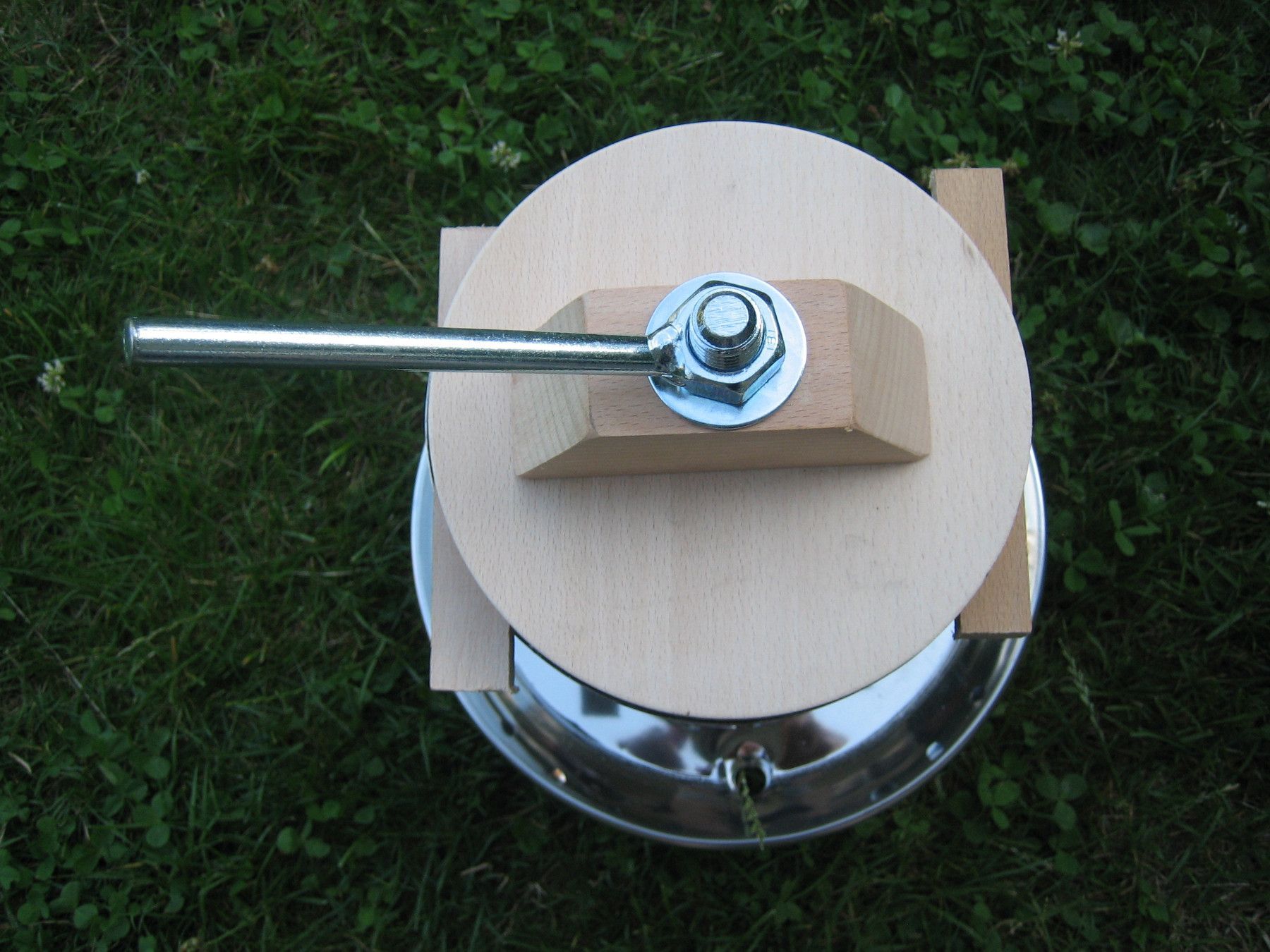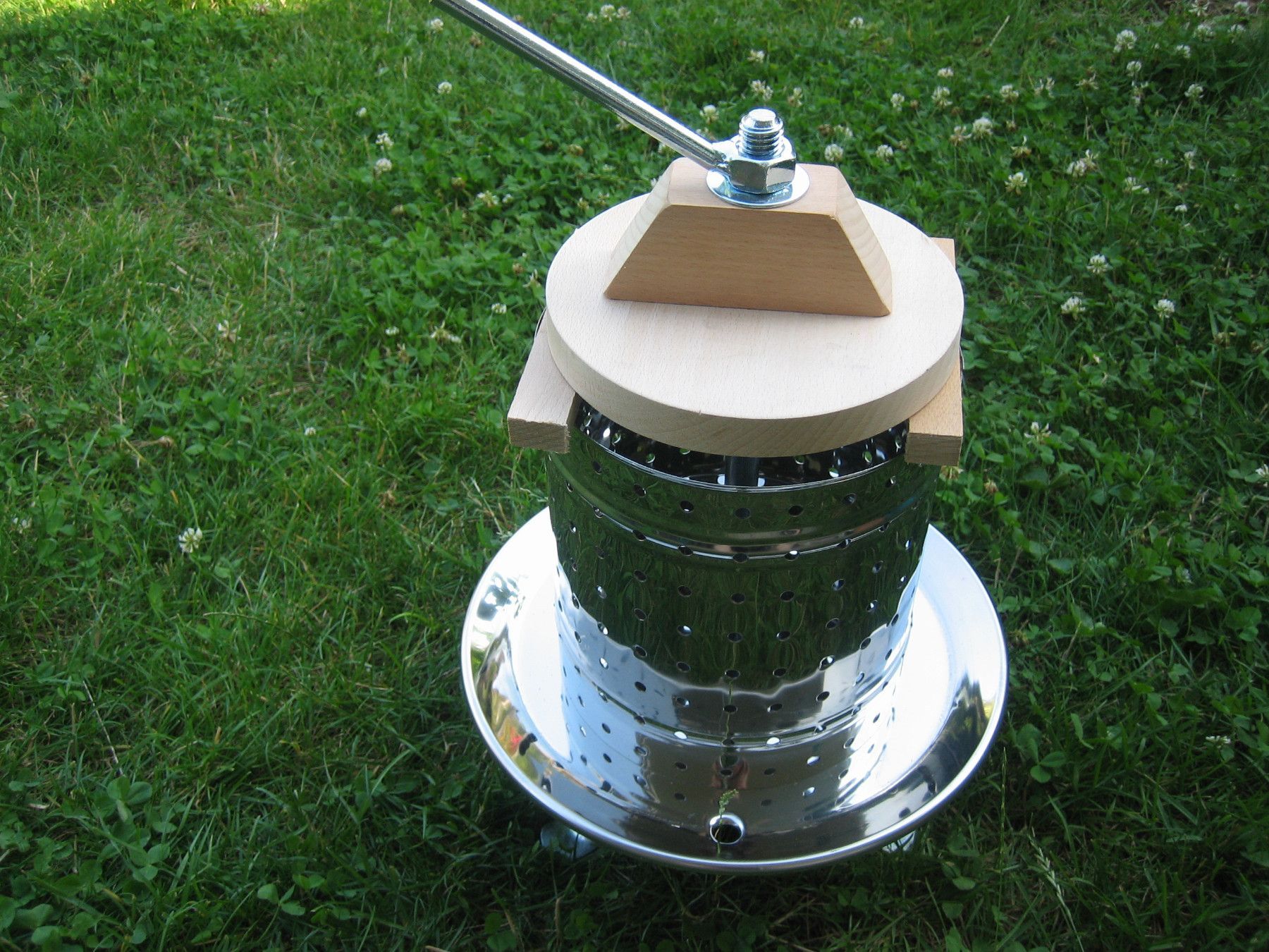 Original Kroatische Obstpresse Beerenpresse Griebenpresse Grammelnpresse Presse ist aus Edelstahl Mit Abfluss im Unterteller Materialstärke : 1 mm Mit 3 Beinen,fest instaliert Druckholz : Buche Vollholz Durchgängige Spindel Spindel Schraube : M 12 Höhe mit Beinen und Druckholz:43 cm Höhe-Beine : 9 c