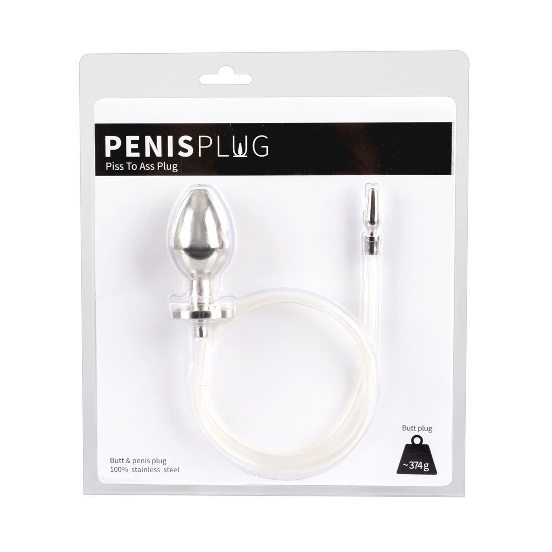 Edelstahl Penis- und Anal-Plug mit Schlauch NS-Spiele Hohl 374 g Sexspielezug