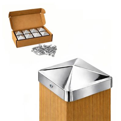 • 6x Edelstahl Pfostenkappe Pyramide 91x91mm Zaunkappe Zierkappe Pfahl Holzzaun