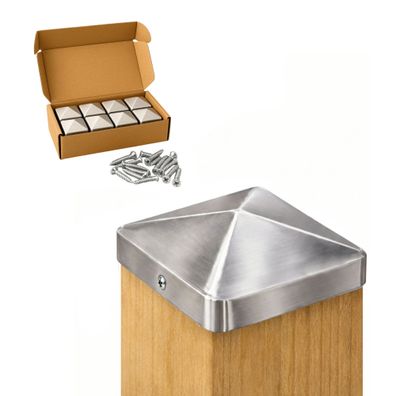 • 10x Edelstahl Pfostenkappe Pyramide 91x91mm Zaunkappe Zierkappe Pfahl Holzzaun