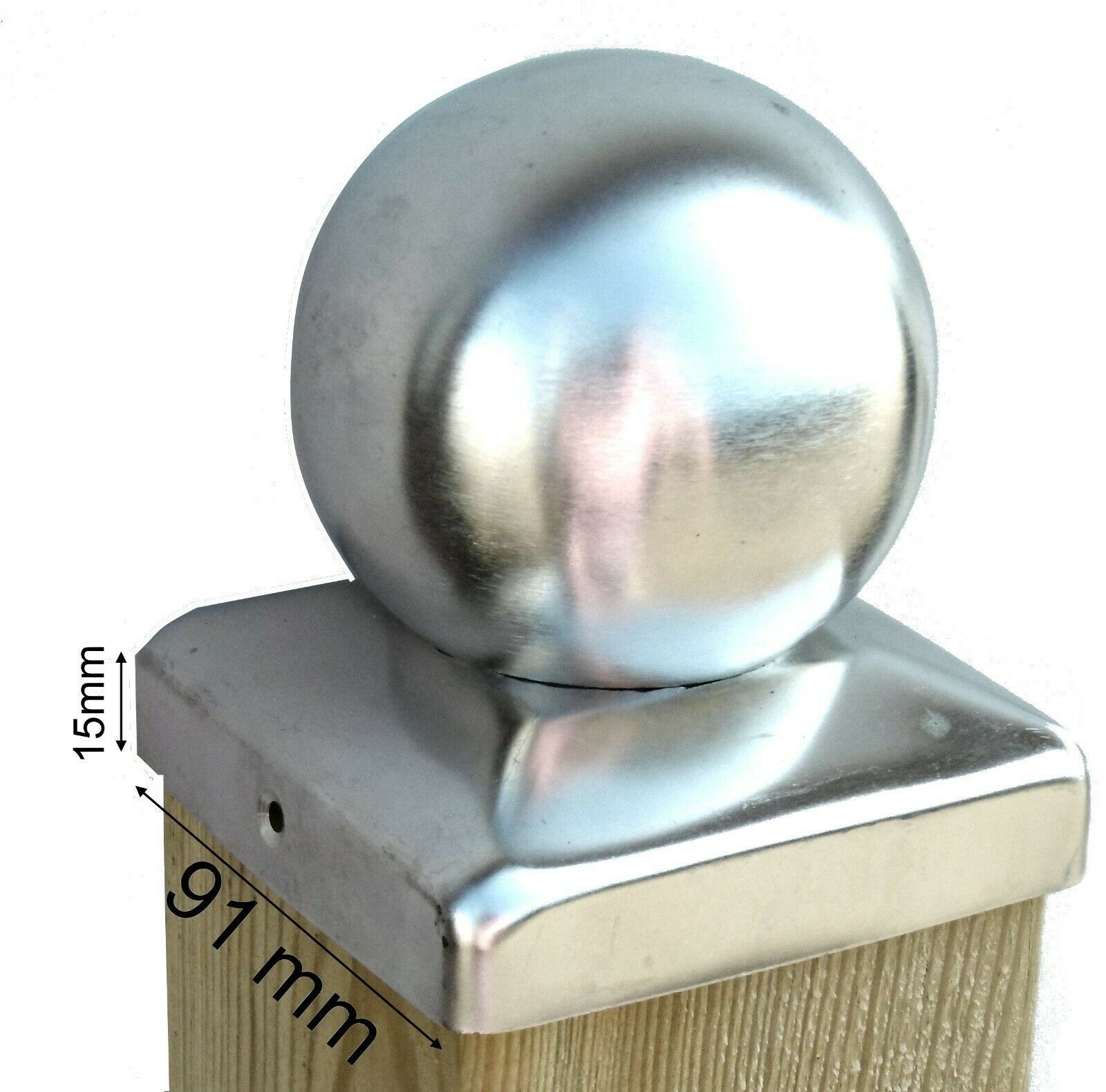 Edelstahl Pfostenkappen 90 mm Kugel Holz-Posten Witterungsschutz Zaunpfosten Cap