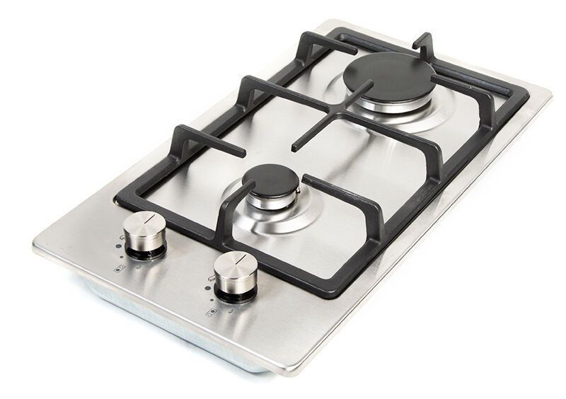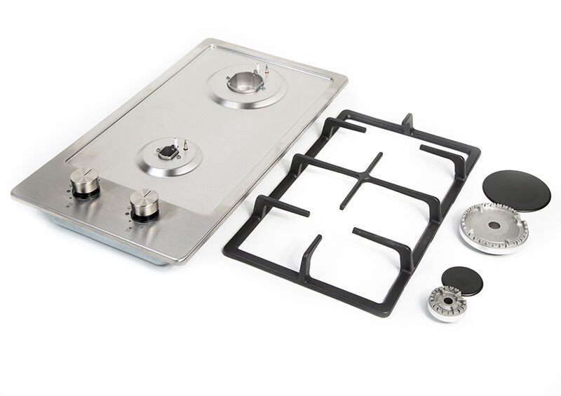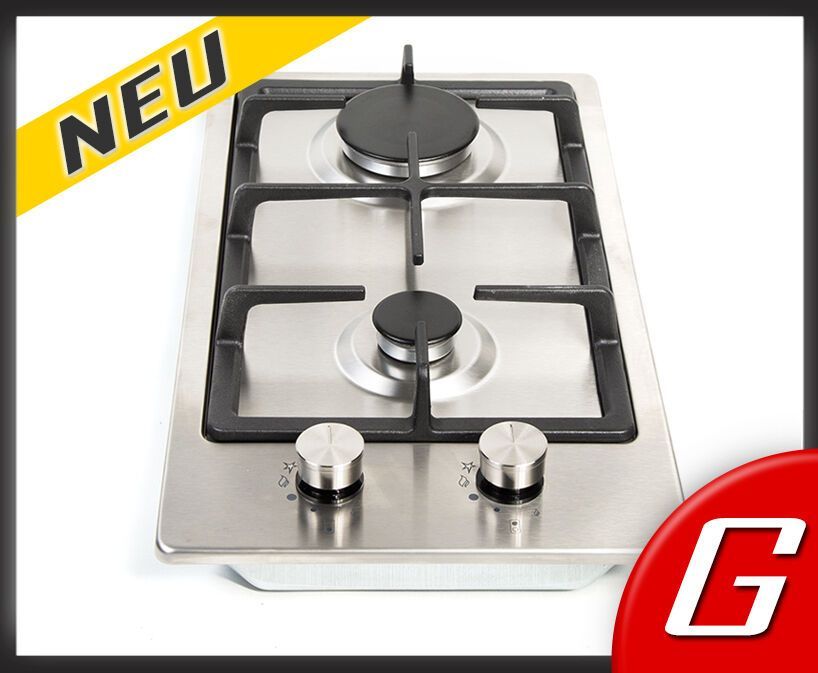 Hochwertiger 2 flammiger Propan Gaskocher Gaskochfeld mit Edelstahloberfläche sowie Zündsicherung und elektronische Zündung (über 230 V). Vorteil: autark verwendbar mit Topfträger aus Gusseisen mit Brennerdeckel aus Gusseisen wechselbare Gasdüsen (Erdgas 20 mbar) steckerfertig für elektronische Zünd