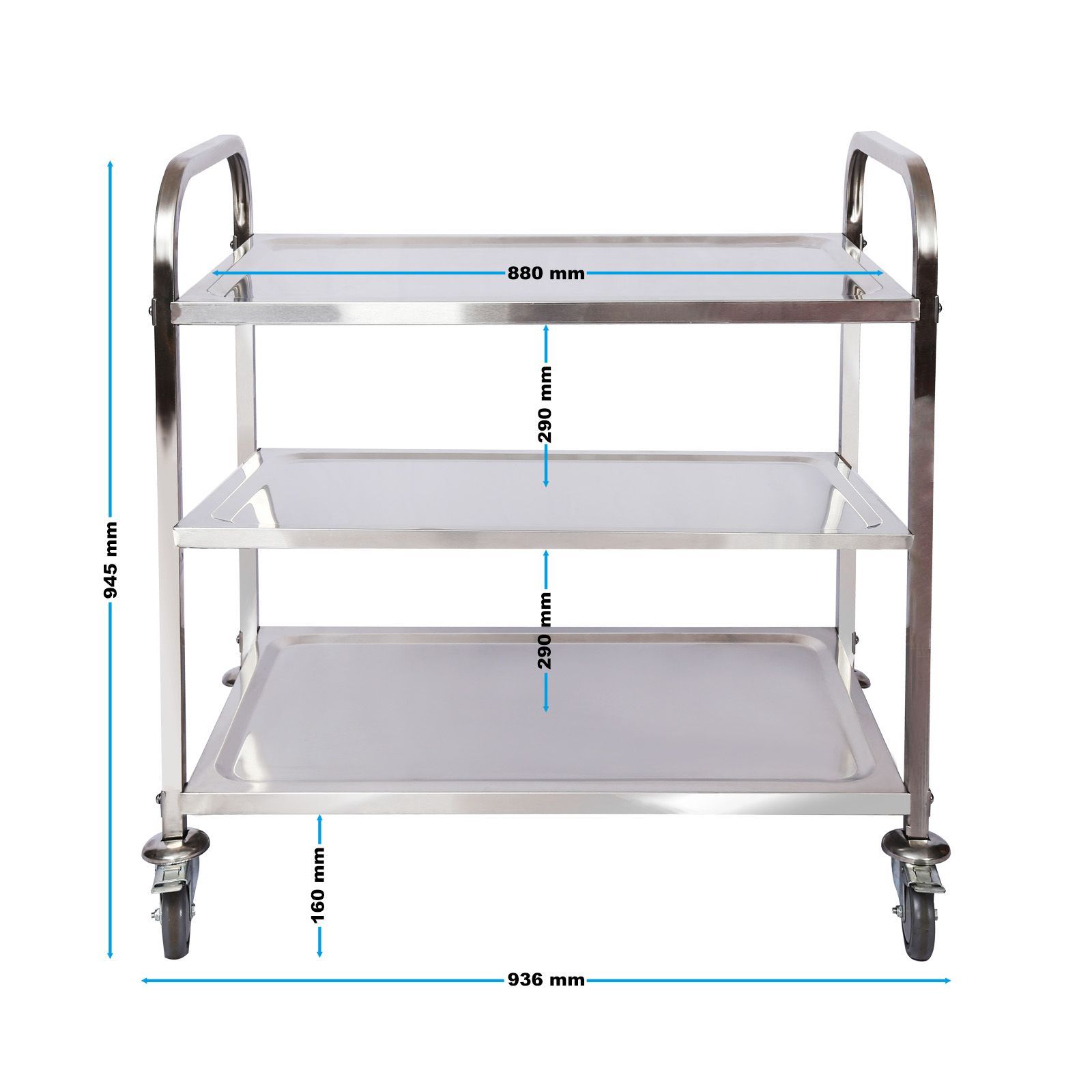 Edelstahl Servierwagen 3 Etagen 150kg Küchenwagen Teewagen Abräumwagen