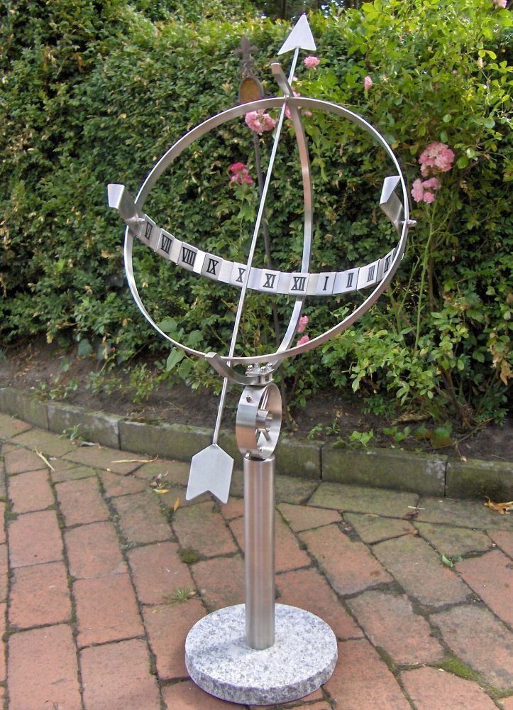 Edelstahl Sonnenuhr mit Granitfuß für Terrasse & Garten