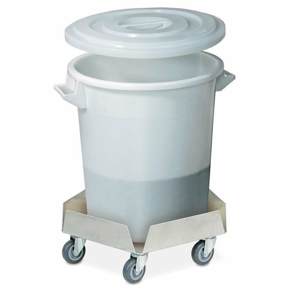 Edelstahl-Tonnenroller, verzinkten Lenkrollen, graue Polyurethanräder, Trg 250 kg